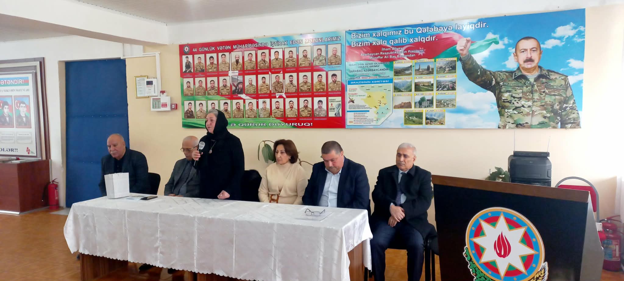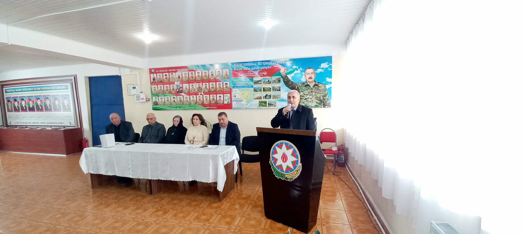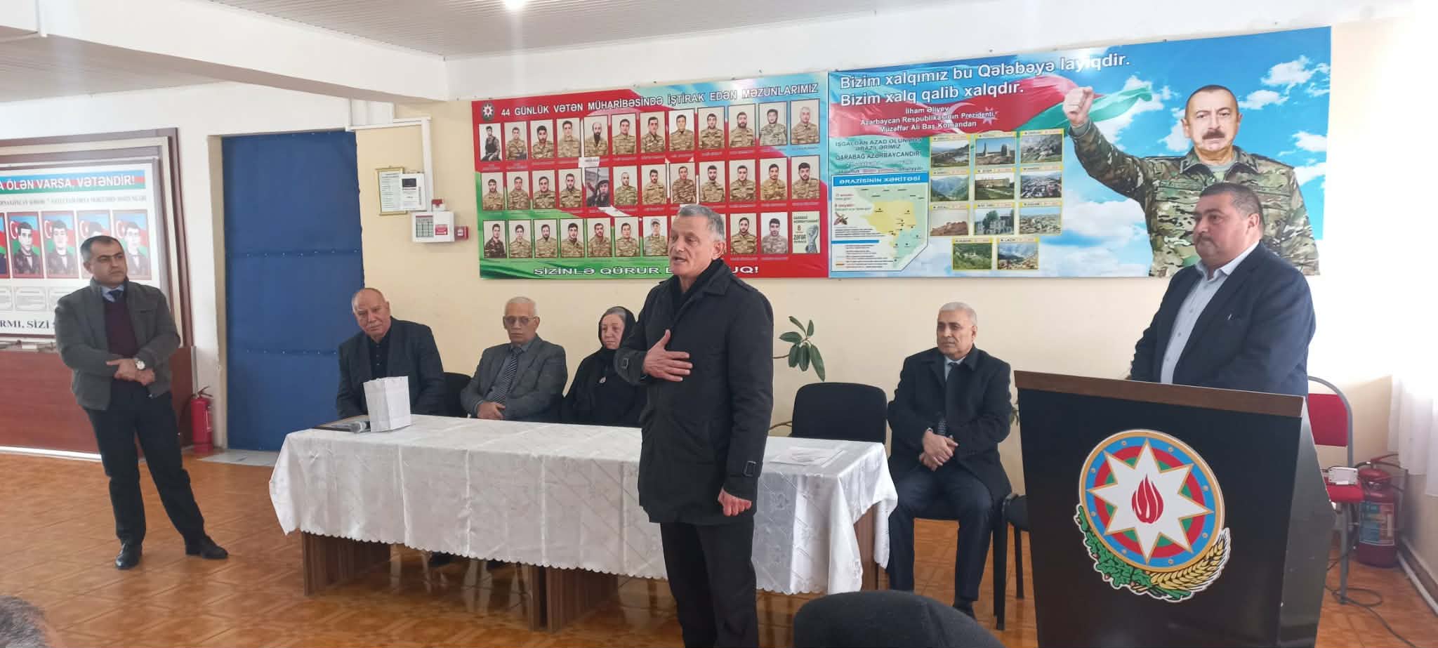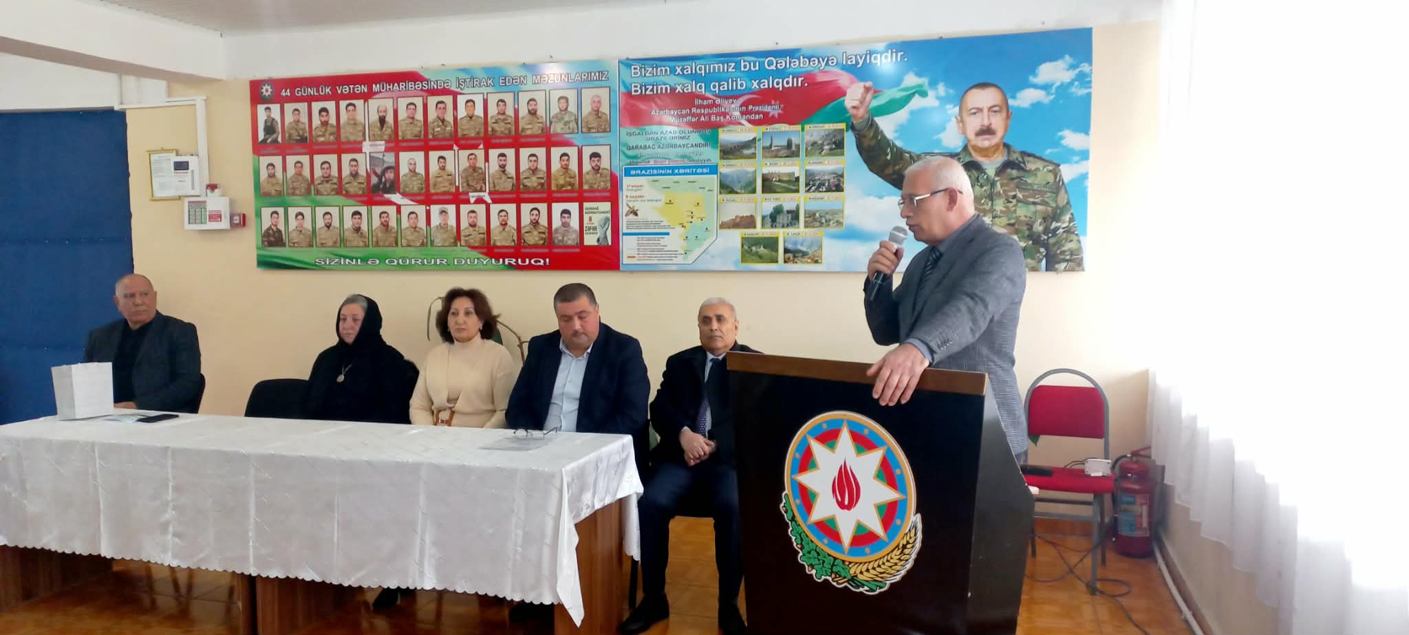 Açılışı giriş sözü ilə açan məktəbin direktoru Sərvət Ağayev qəhrəmanlıq salnaməsi yazaraq vətən uğrunda canlarını fəda etmiş bütün şəhidlərimizə Allahdan rəhmət diləyib, şəhid ailələrinə səbir arzulayıb. 44 günlük Vətən müharibəsində şəhidlərin şərəfli amal naminə bu zirvəyə ucaldıqlarını və öz canları bahasına işğal altında olan torpaqlarımızı işğaldan azad etdiklərini vurğulayıb, Buna görə qazilərimizə və şəhidlərimizə Azərbaycan xalqının daim minnətdar olduğunu bildirib.