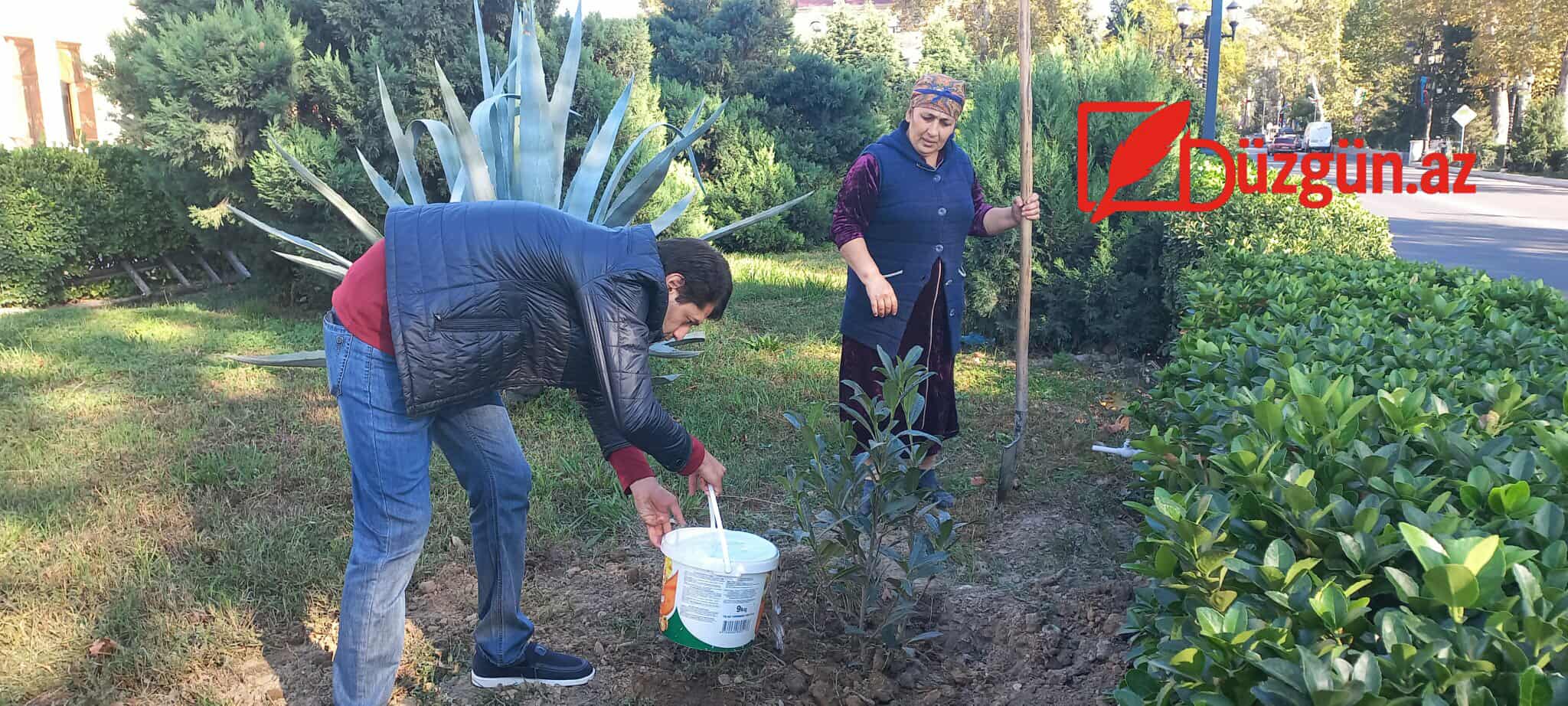Daha sonra 15 ədəd oleandr, 2 ədəd sərf və 10 ədəd dekorativ ağac əkilib. Suvarılıb, aqrotexniki qulluq olunub.