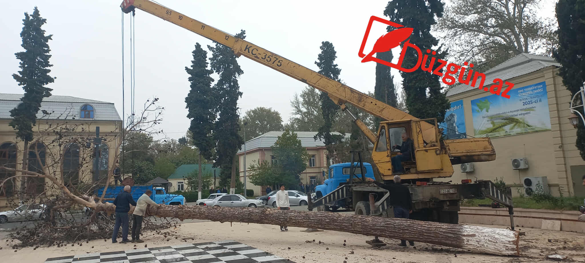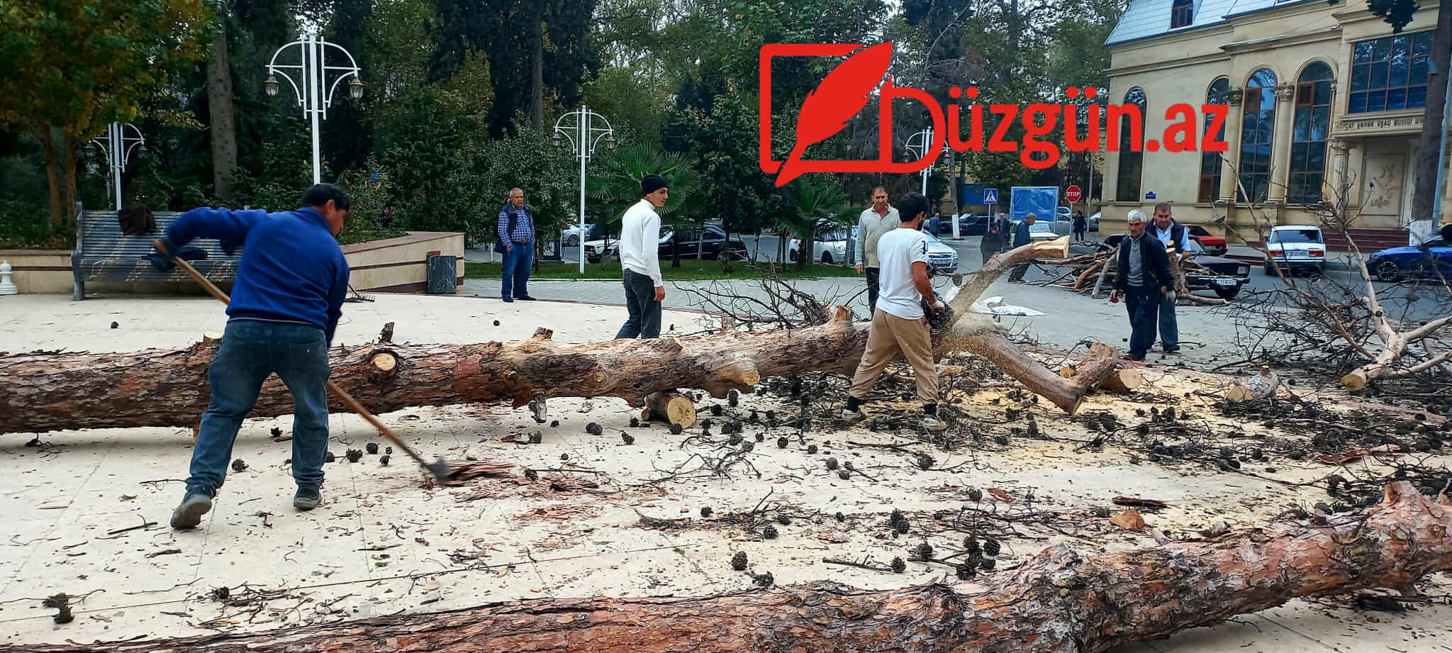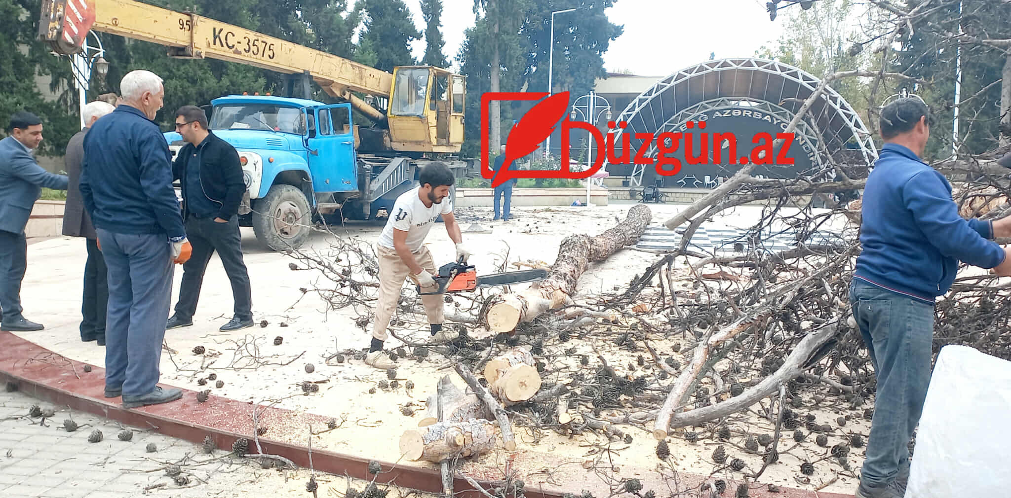 Düzgün.az xəbər verir ki, Göyçay Rayon İcra Hakimiyyəti yanında Şəhər Təsərrüfatı Birliyi tərəfindən rayonda qurumuş şam ağacının kəsilməsi işinə başlanıb.