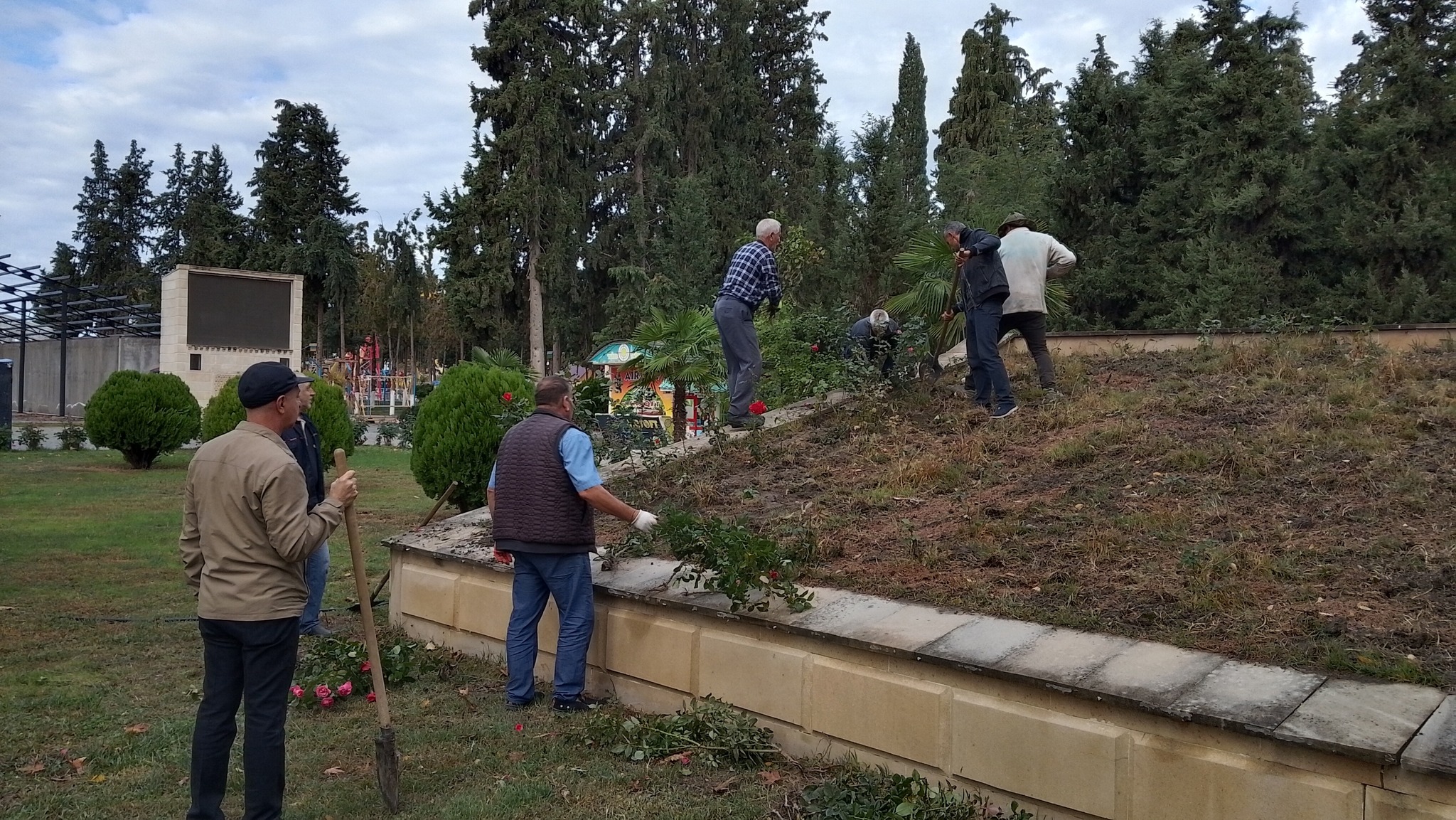 Daha sonra yeni əkiləcək güllərin yerləri müəyyən edilib, torpaq örtüyü hamarlanıb, çalalar qazılıb və hazır vəziyyətə gətirilib. Sonra 100 ədəd qızılgül əkilib. Suvarılıb və aqrotexniki qulluq olunub.