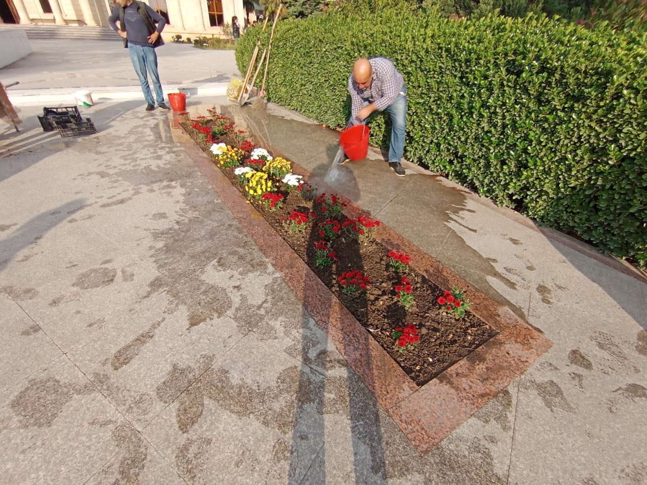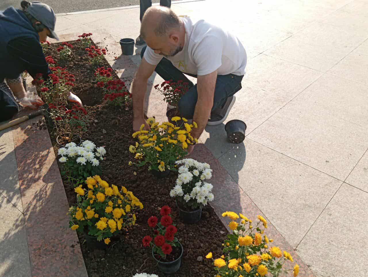 Daha sonra 80 ədəd xrizonrema dekorativ gül əkilib. Suvarılıb və aqrotexniki qulluq olunub.