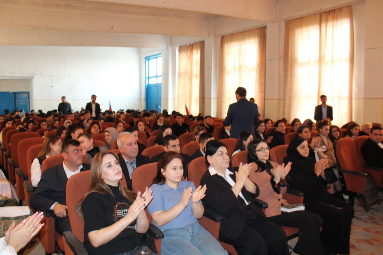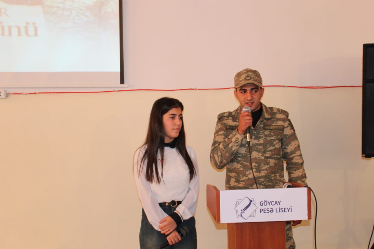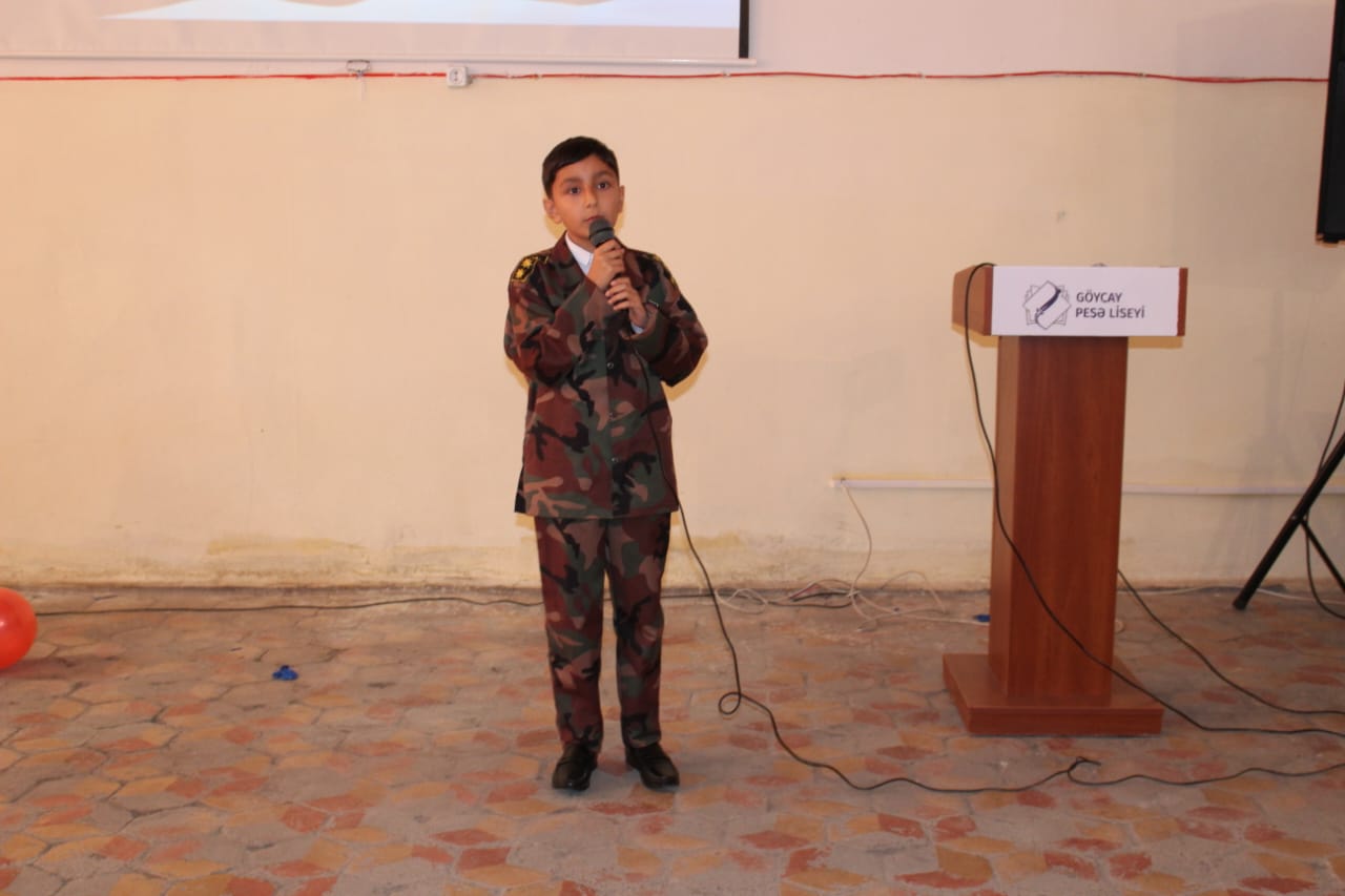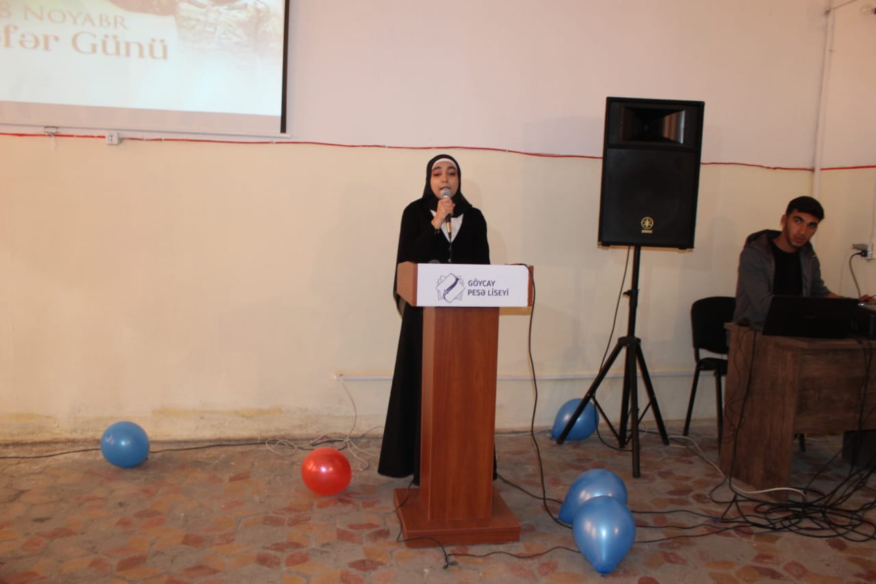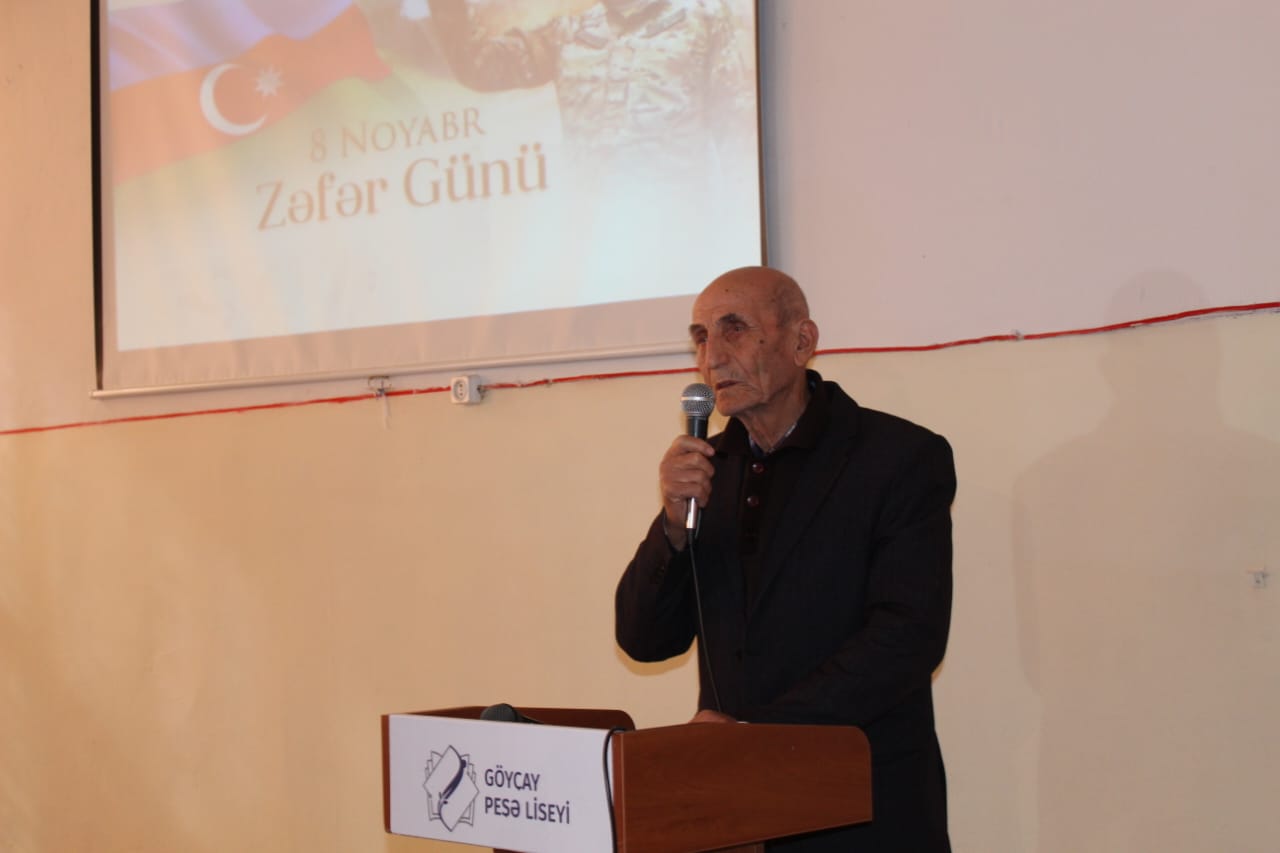 Liseyin direktor əvəzi Elxan Əliyev çıxış edərək, “Zəfər Günü” münasibəti ilə tədbir iştirakçılarını təbrik edərək gələn qonaqlara təşəkkürünü bildirib. Şəhidlərimizə Allahdan rəhmət, ailələrinə səbir diləyib. 8 Noyabr – Zəfər Günü Azərbaycan xalqının tarixində qürur, şərəf və birlik rəmzinə çevrilmiş ən möhtəşəm hadisələrdən olduğunu qeyd edib. Azərbaycanın öz müasir tarixinin ən parlaq səhifəsini – Zəfər Gününü qeyd etdiyini vurğulayan liseyin diektoru 44 gün davam edən Vətən müharibəsinin xalqın birliyini, milli ruhun sarsılmazlığını, dövlət-xalq-ordu həmrəyliyinin gücünü bütün dünyaya nümayiş etdirdiyini vurğulayıb.