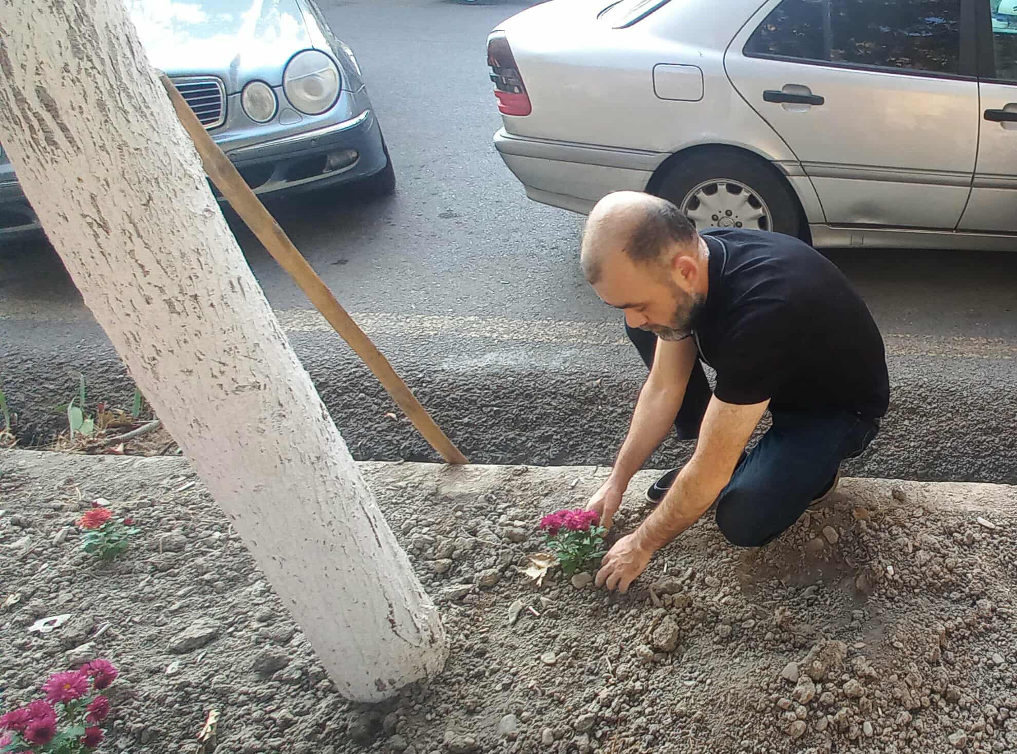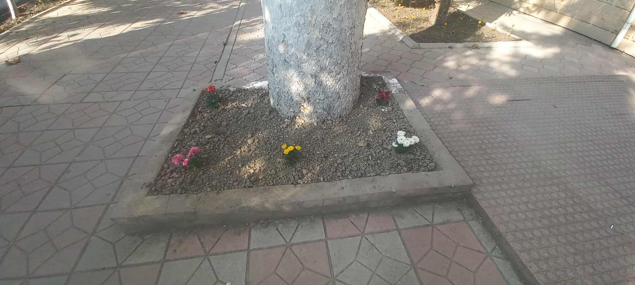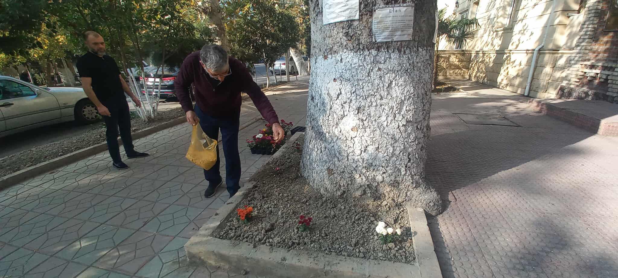 Daha sonra çalalar qazılaraq müxtəlif növ dekorativ gül əkilib.Bununla yanaşı qazon otu səpilib.Suvarılıb, aqrotexniki qulluq olunub.