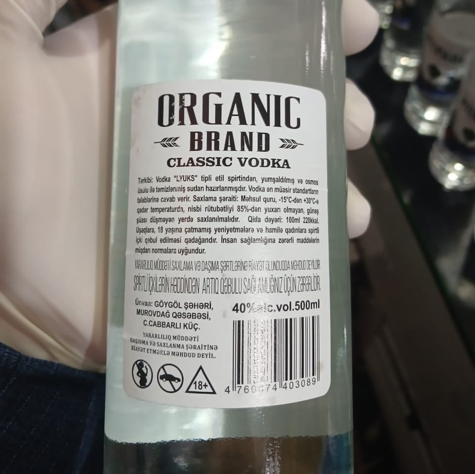 Agntliyin İnformasiya təminatı və innovativ həllər şöbəsindən verilən məlumata görə, marketdə ümumi sayı 91 ədəd “Golf Organic”, “Vip Line”, “Orginal Natura”, “Piterskaya”, “Wheat Water” və ”Organic Brand” əmtəə nişanlı saxta alkoqollu içki aşkar edilib. Saxta içkilər satışdan kənarlaşdırılıb.