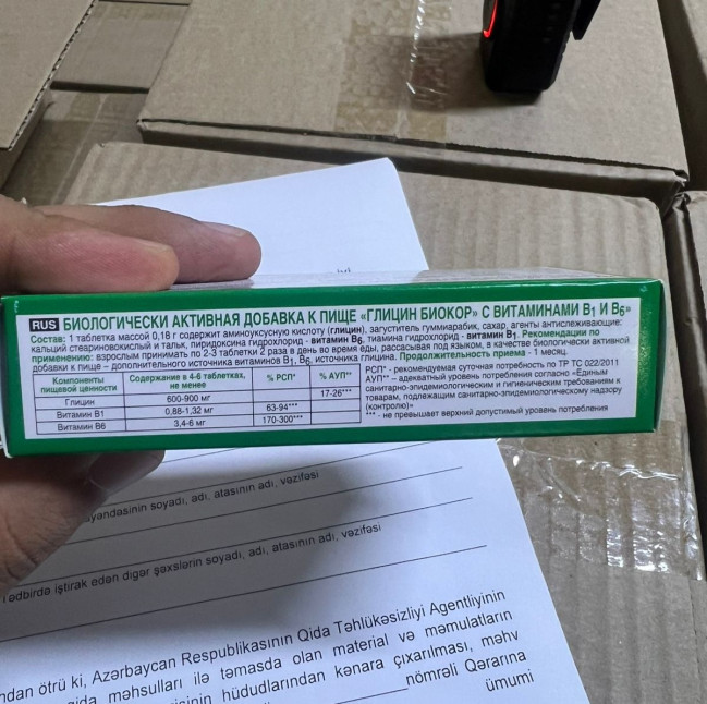 Düzgün.az xəbər verir ki, “Nord Star Pharma” MMC-nin Rusiyadan idxal etdiyi 10 min “Qlisin Biokor” B1 və B6 vitaminləri ilə” əmtəə nişanlı bioloji aktiv qida məhsulunun müayinəsi nəticəsində uyğunsuzluq aşkarlanıb.