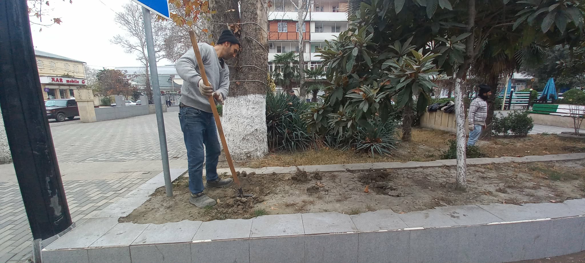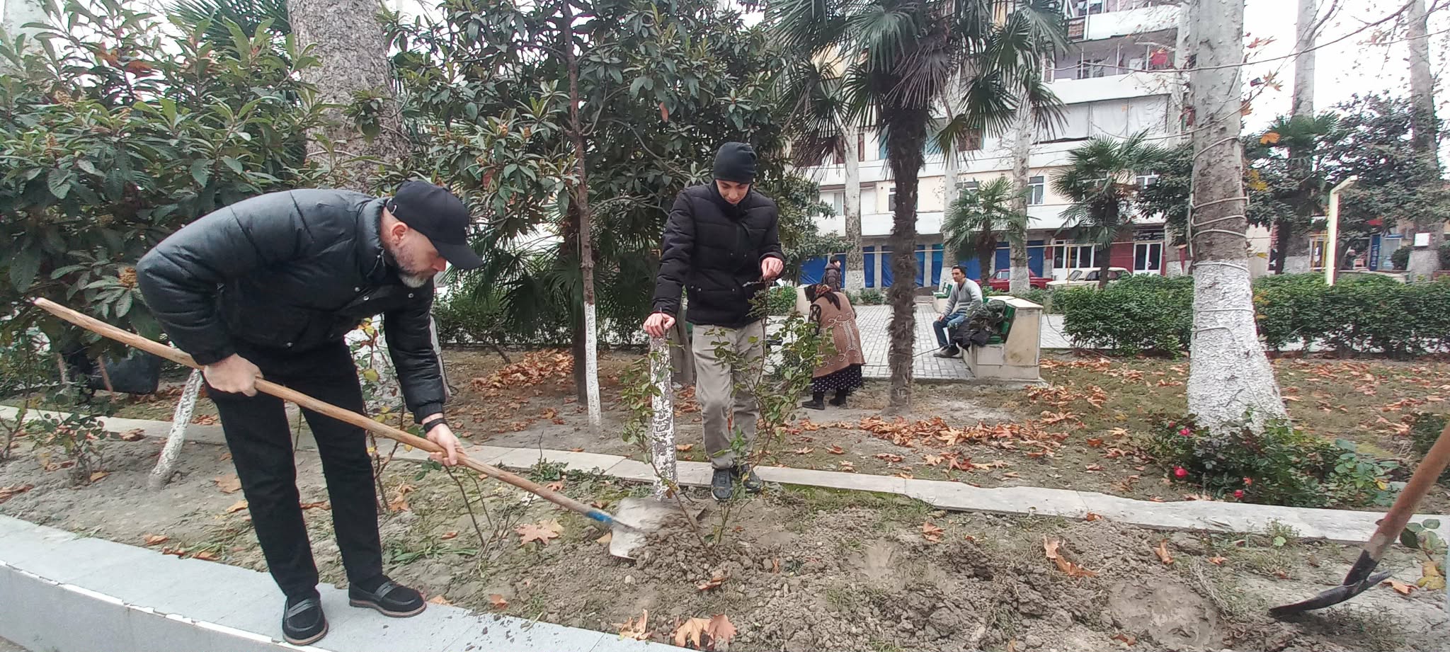 Əvvəlcə ərazi alaq otlarından və qurumuş xəzəl yarpaqlarından təmizlənib.Torpaq örtüyü hamarlanıb, çalalar qazılıb və əkilməsi üçün lazım olan zəruri hazırlıq işləri görülüb.