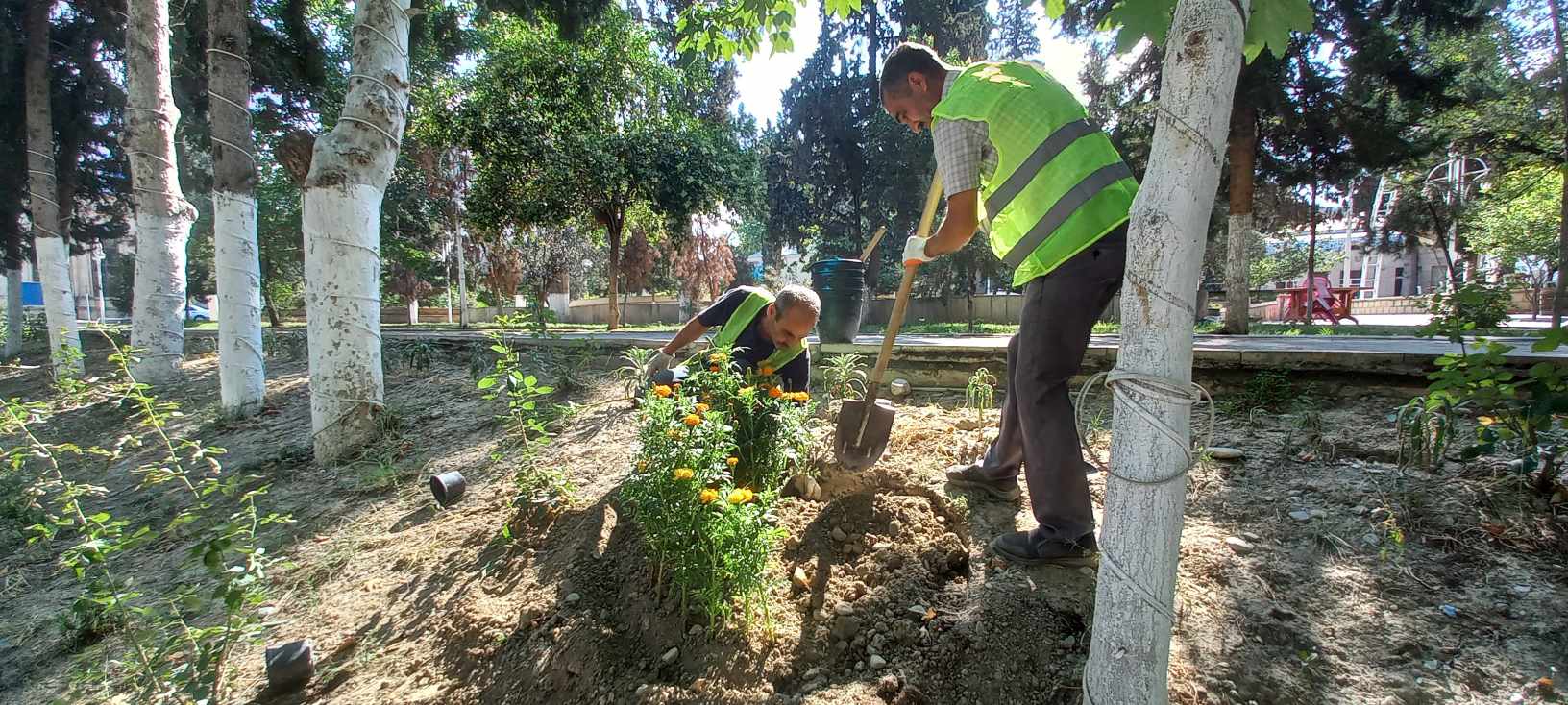 Belə ki, 18 iyun tarixində M.Ə.Rəsulzadə və Nərmanov küçələrinin kəsişməsində yerləşən Sabir bağının ehtiyac olan hissələrinə növbəti dəfə müxtəlif növ gül- çiçək kollarının əkilməsi işi icra olunub.İlkin olaraq sözügedən ərazi alaq otlarından təmizlənib, torpaq örtüyü hamarlanıb, çalalar qazılıb və əkilməsi üçün lazım olan zəruri hazırlıq işləri görülüb.