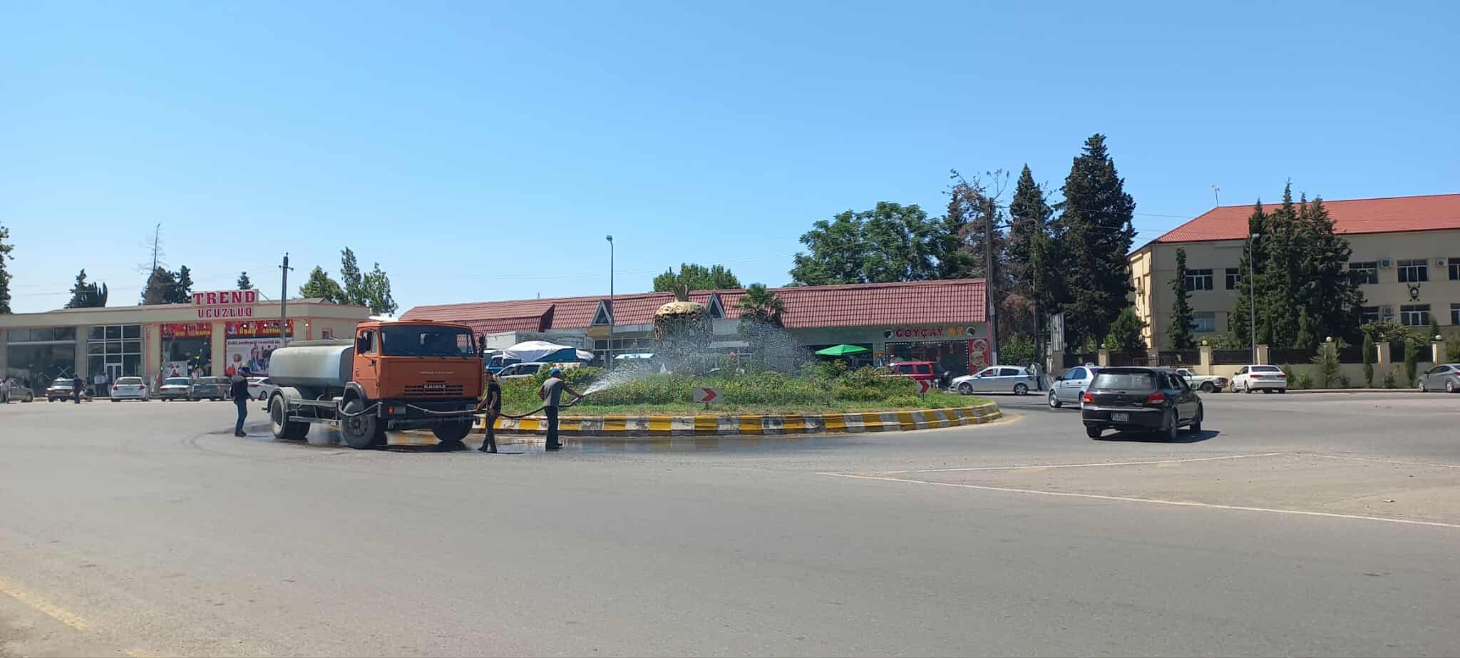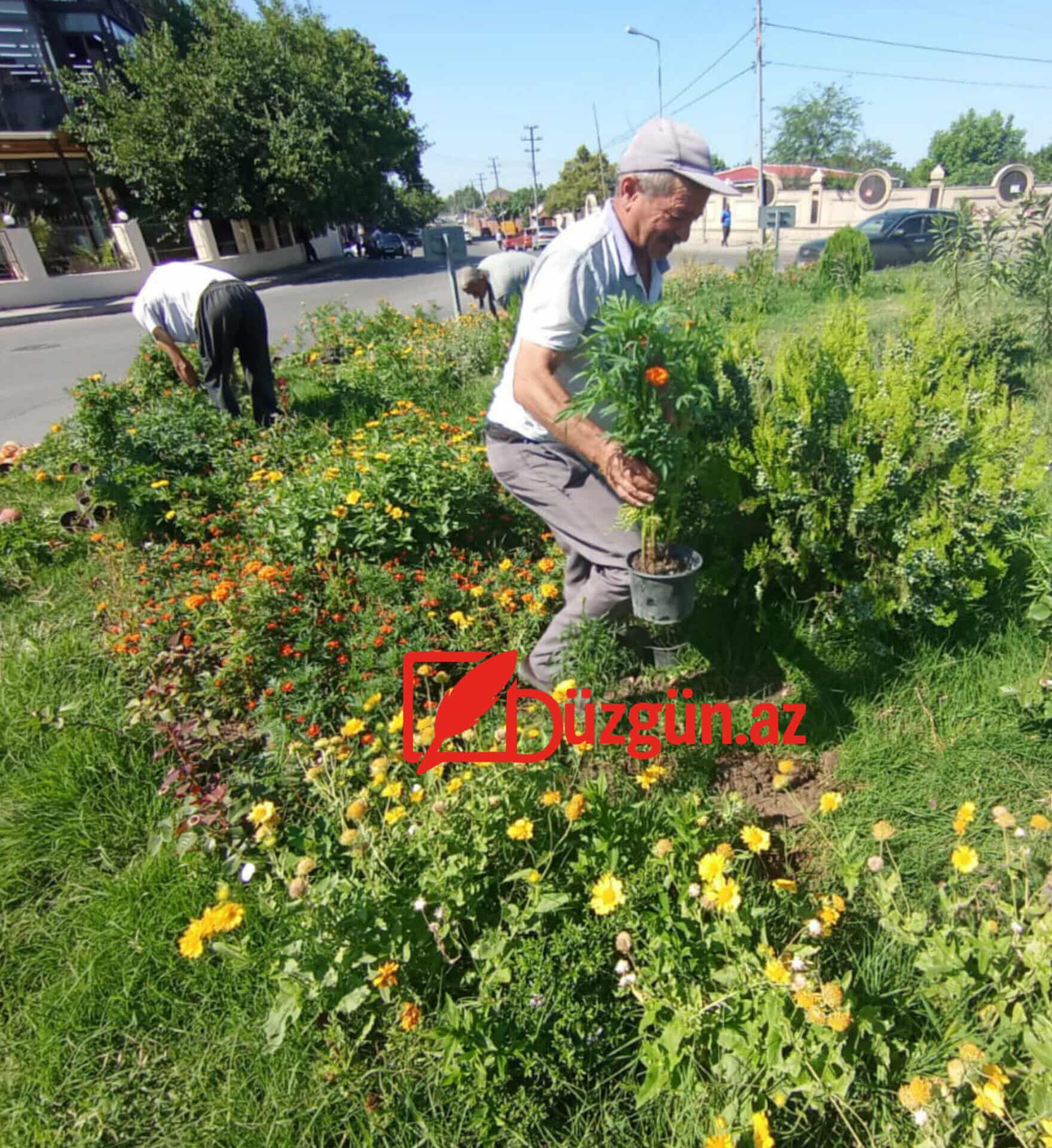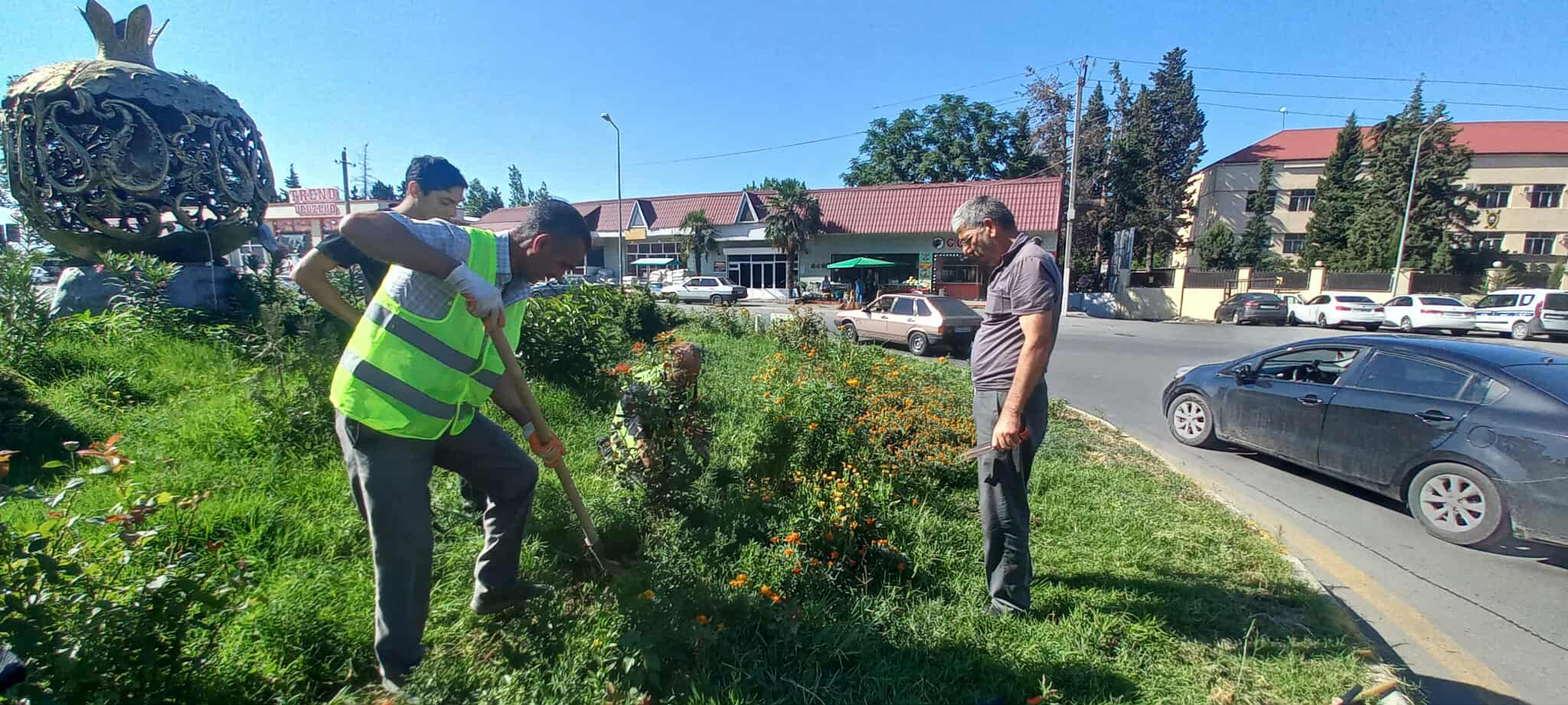 Göyçay rayonunda torpaq-iqlim şəraitinə uyğun olaraq Heydər Əliyev prospekti daxil olmaqla küçələrin yaşıllıq ərazilərinə dekorativ gül-çiçək kollarının əkilməsi davam etdirilir.