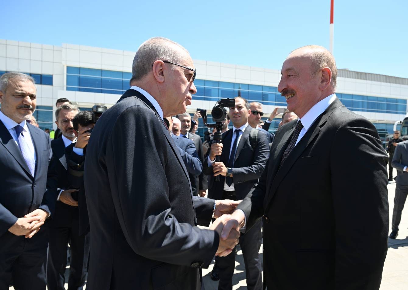 Dövlətimizin başçısını Türkiyə Respublikasının Prezidenti Rəcəb Tayyib Ərdoğan qarşılayıb.