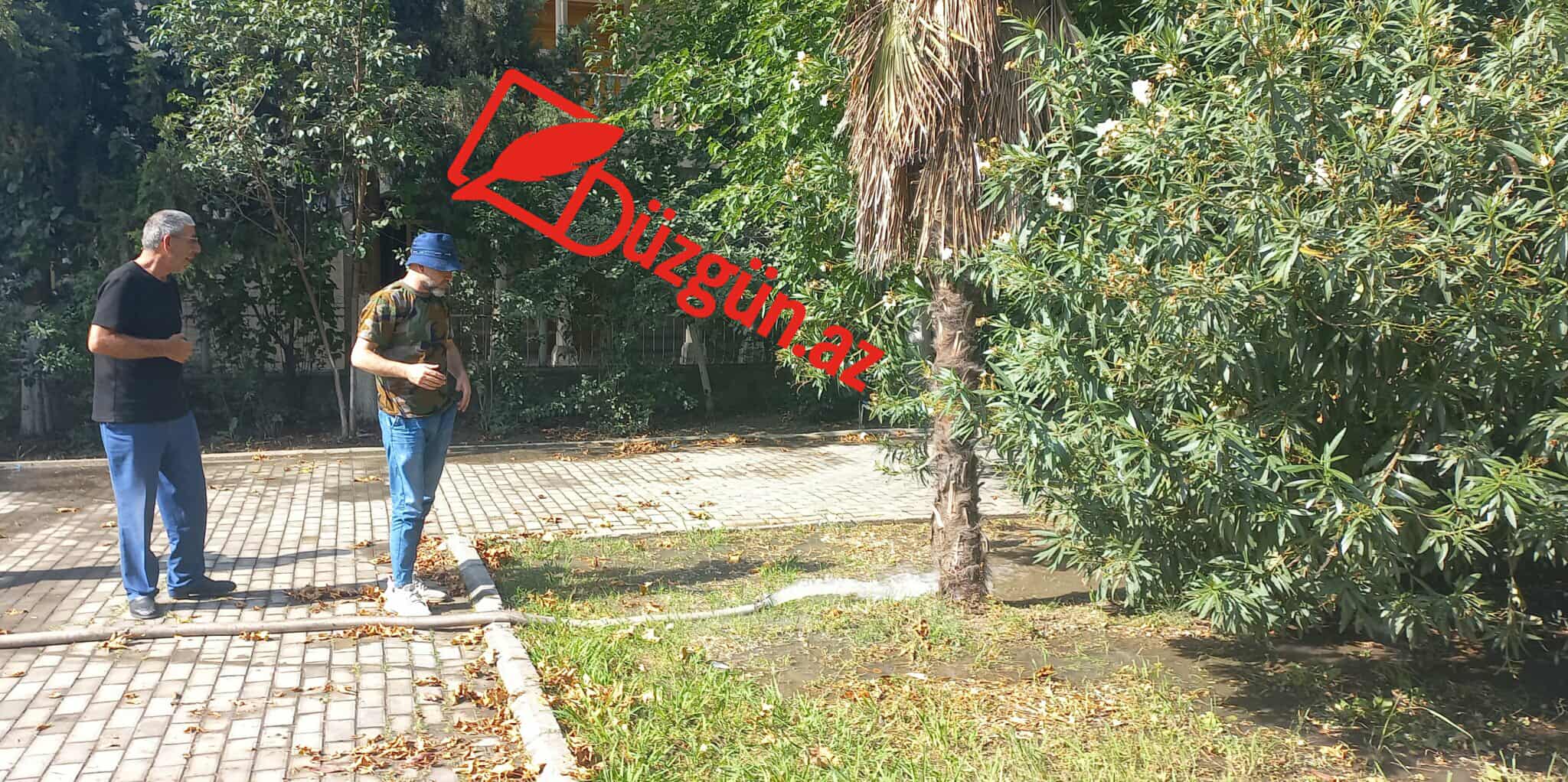 Belə ki, əkilən müxtəlif növ ağaclar və dekorativ güllər prospektdən keçən arxdan pompa vasitəsilə su götürülərək suvarılıb və aqrotexniki qulluq olunub.