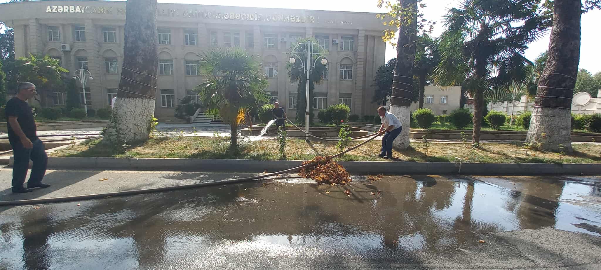 Düzgün.az xəbər verir ki, 21 iyul tarixində növbəti suvarma işi M.Ə.Rəsulzadə küçəsində yerləşən rayon İcra Hakimiyyəti binasının qarşısında, sözügedən küçədə yerləşən çoxmərtəbəli yaşayış binasının qarşısında istismara yararsız vəziyyətdə olan fəvvarə kompleksində salınmış yaşıllıqda aparılıb.