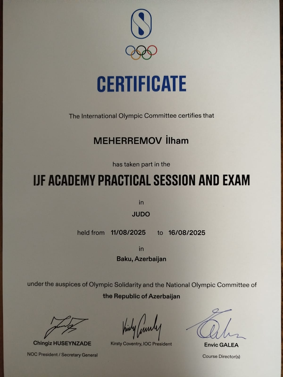 Qeyd edək ki, Beynəlxalq Olimpiya Komitəsinin Olimpiya Həmrəyliyi Fondu ilə Gənclər və İdman Nazirliyinin dəstəyi, Milli Olimpiya Komitəsi və Azərbaycan Cüdo Federasiyasının birgə təşkilatçılığı ilə ölkəmizdə 5-ci dəfə baş tutan proqrama Azərbaycanla yanaşı, Gürcüstan və Özbəkistandan olmaqla ümumilikdə 48 məşqçi qatılıb. İndiyə qədər isə sözügedən proqrama 245 yerli məşqçi təhsil prosesinə cəlb edilib. Onlardan 168 nəfər isə imtahanları uğurla başa vuraraq beynəlxalq məşqçilik diplomunu əldə ediblər.