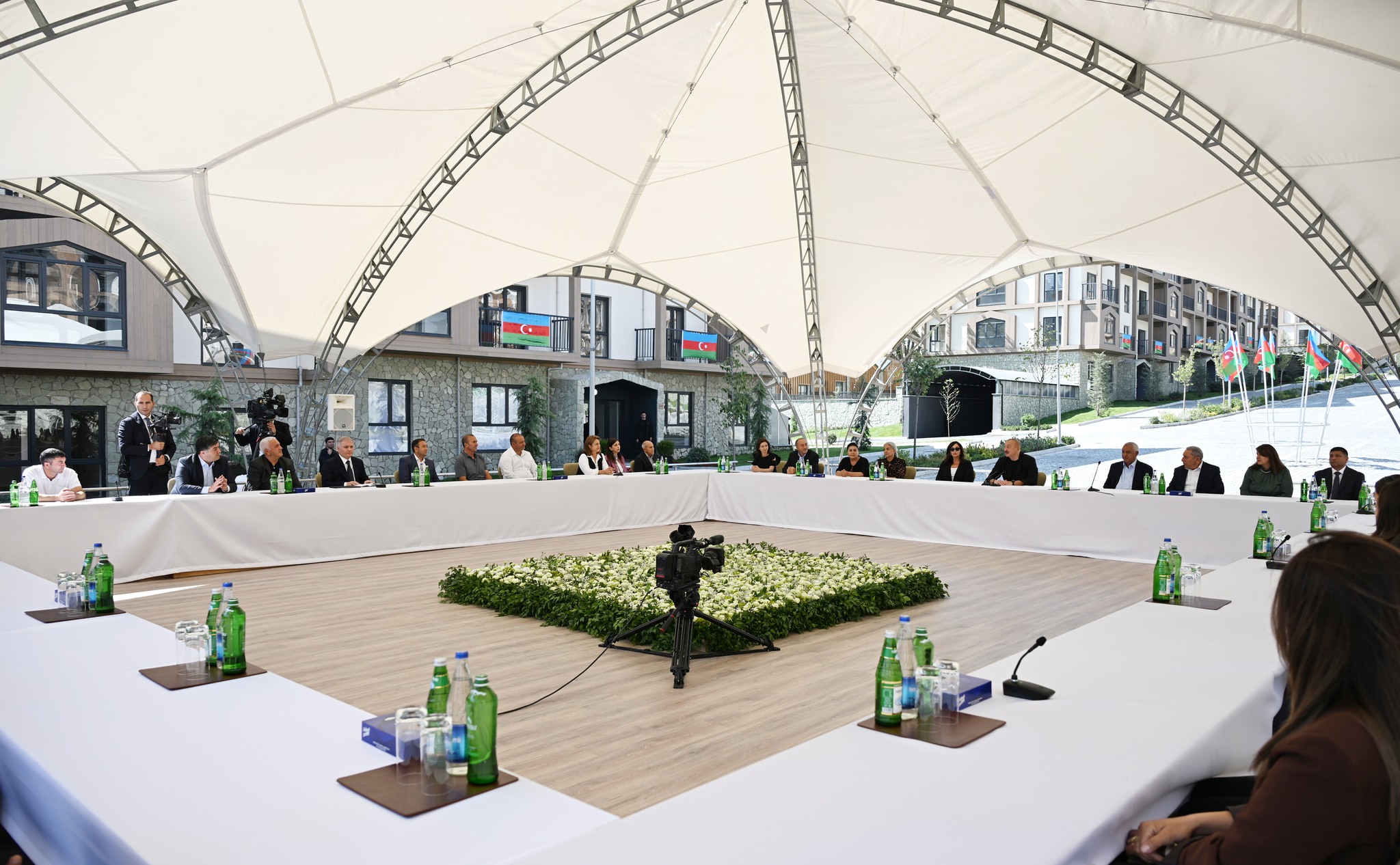 Prezident həmçinin tarixi qələbələrimizə diqqət çəkərək bildirdi ki, 2020-ci ilin 8 noyabrı, 2023-cü ilin 19 sentyabrı şərəfli və tarixi günlərdir. Tarixi zəfərimizdən 2023-cü ilin sentyabrınadək əsas hədəf Azərbaycanın suverenliyini tam bərpa etmək idi. Biz bütün bunlara nail olduq. Artıq həmin vaxtdan Azərbaycan xalqı sülh şəraitində yaşayır və bundan sonra da yaşayacaq. Ermənistan – Azərbaycan münasibətlərinin normallaşması prosesi başa çatıb və imzalanmış sənədlər maraqlarımızı tam təmin edir. Bununla yanaşı dövlət başçısı Vaşinqtonda baş tutan görüşdən söz açaraq bəyan etdi ki, Ermənistanla sülh müqaviləsinin müəllifi də Azərbaycandır, hazırlanan sənədlərin bəndlərində Azərbaycanın mövqeyi əsas götürülüb və məhz bu mövqe bölgədə sabitliyin və davamlı sülhün bərqərar olmasında həlledici rol oynayıb.