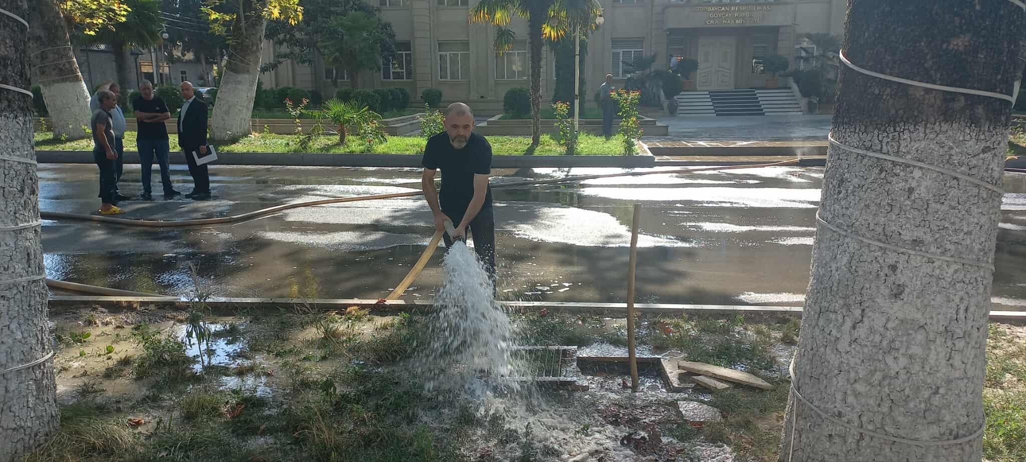 Xəbər verdiyimiz kimi, havalar isti keçdiyi üçün Göyçay rayon İcra Hakimiyyəti yanında Şəhər Təsərrüfatı Birliyinin Yaşıllaşdırma Sahəsi tərəfindən rayonun müxtəlif yerlərində əkilmiş gül-çiçək kolları və ağaclar müəyyən olunmuş qrafikə əsasən, gündəlik olaraq suvarılır.