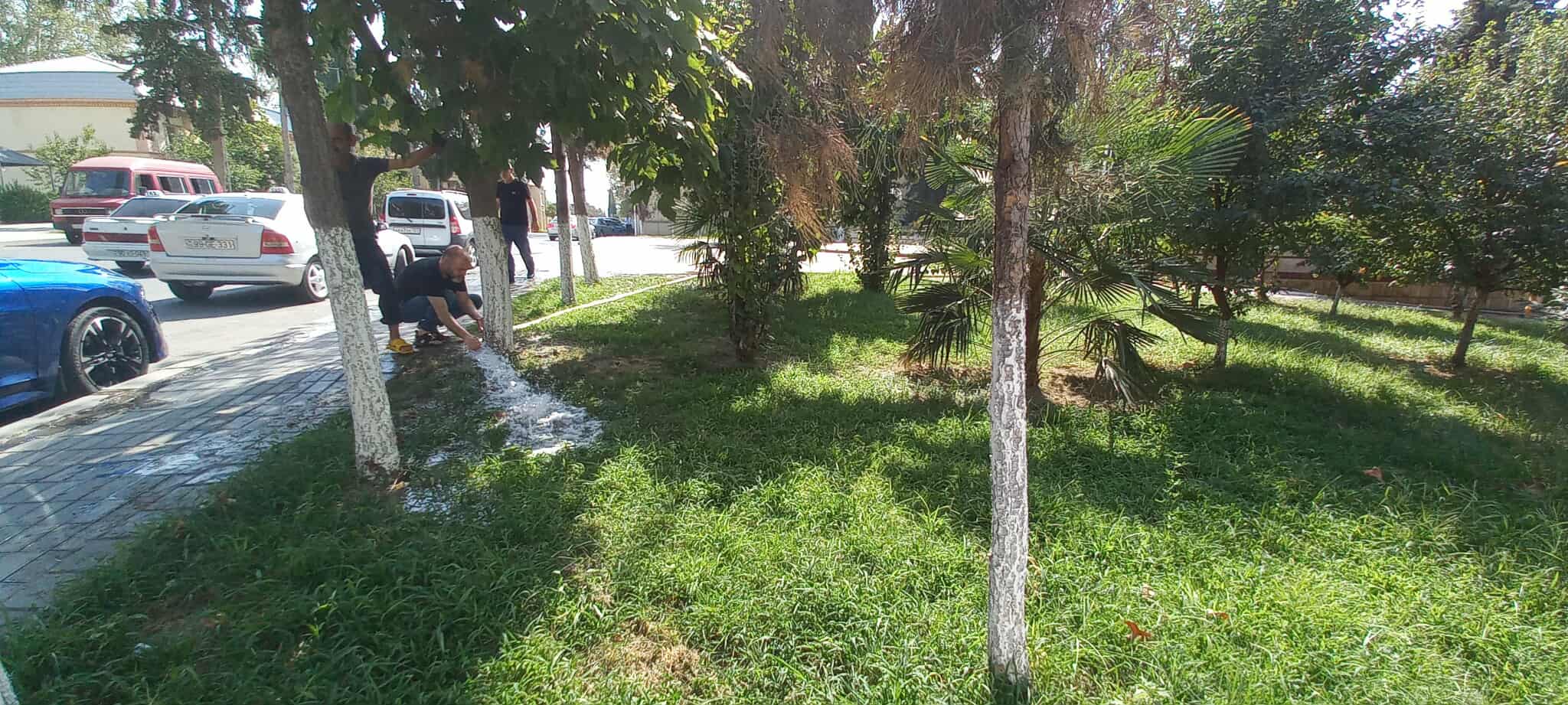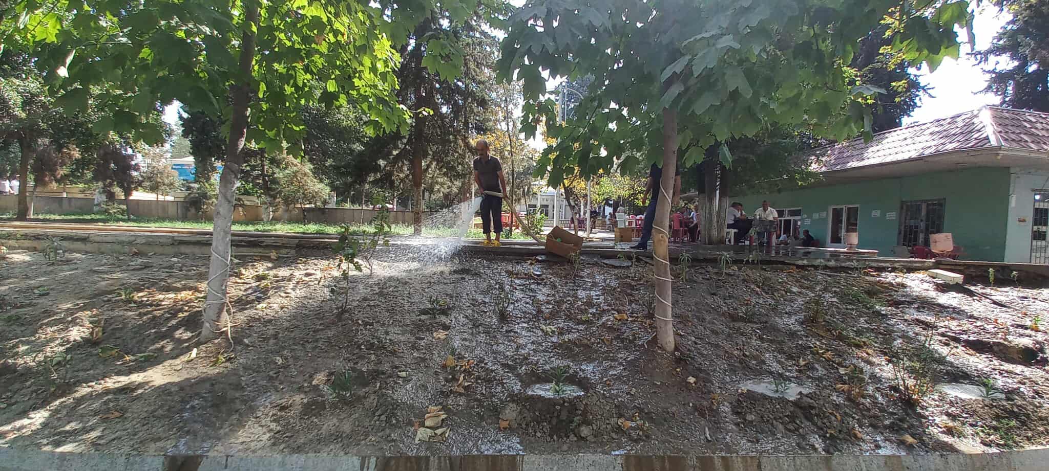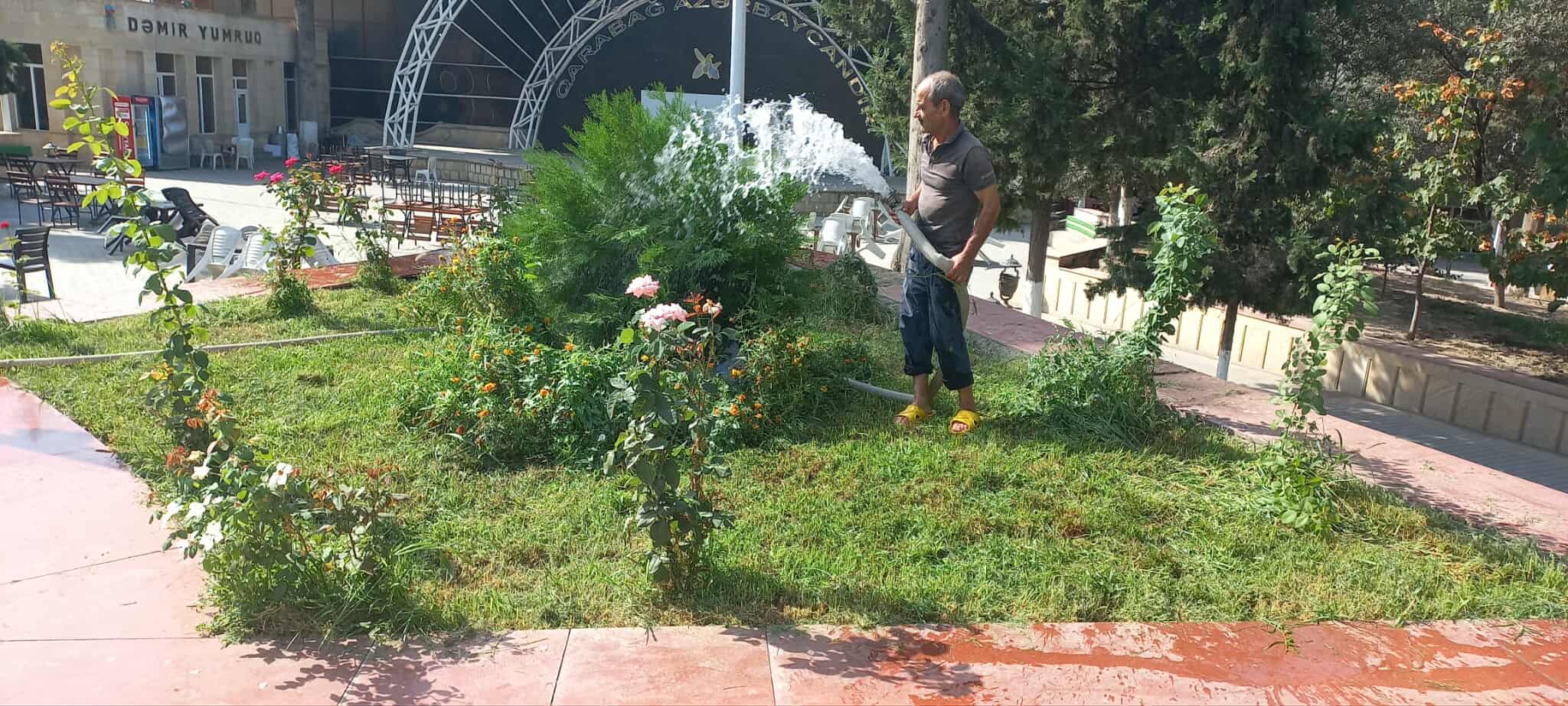 Qeyd olunan ərazilərdə əkilən müxtəlif növ ağaclar, dekorativ güllər mövcud olan arxlardan pompa vasitəsilə su götürülərək suvarılıb və aqrotexniki qulluq olunub.