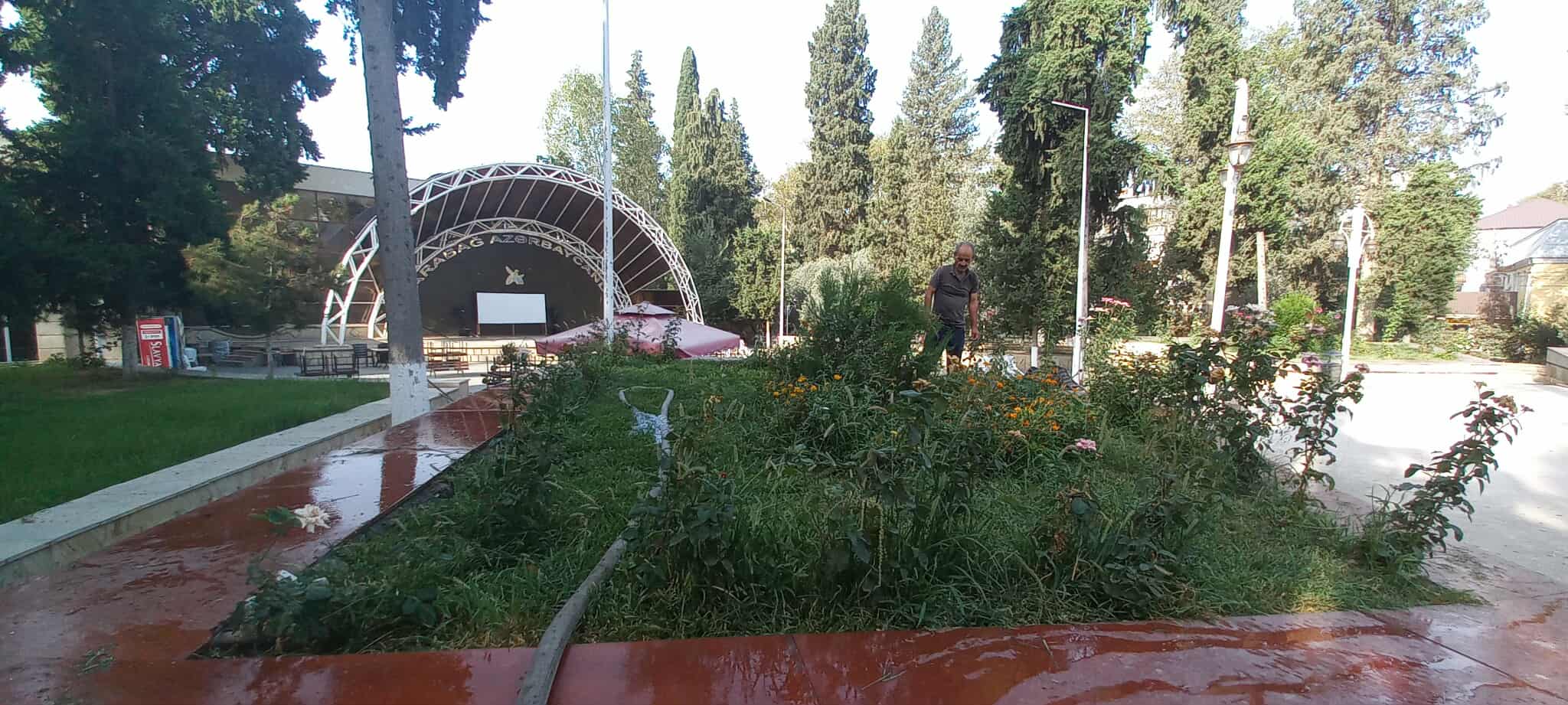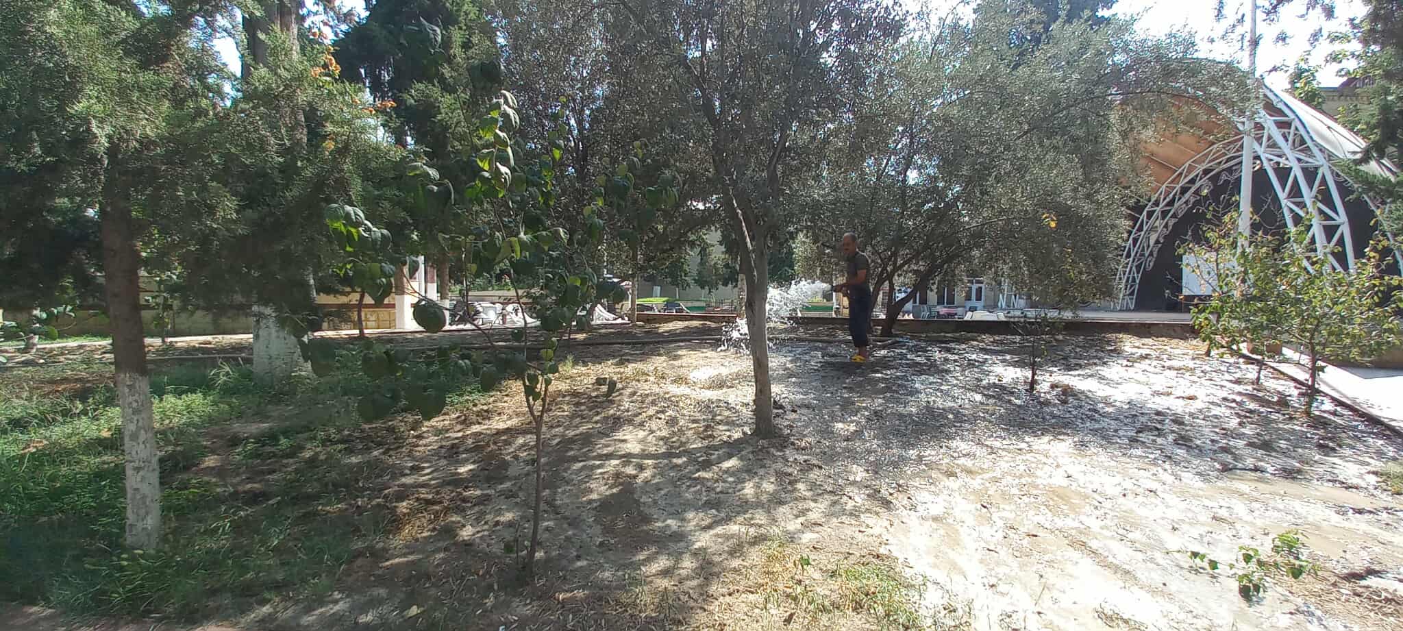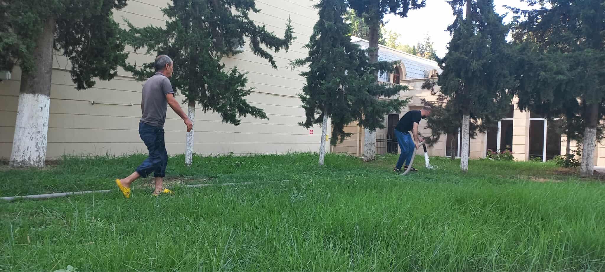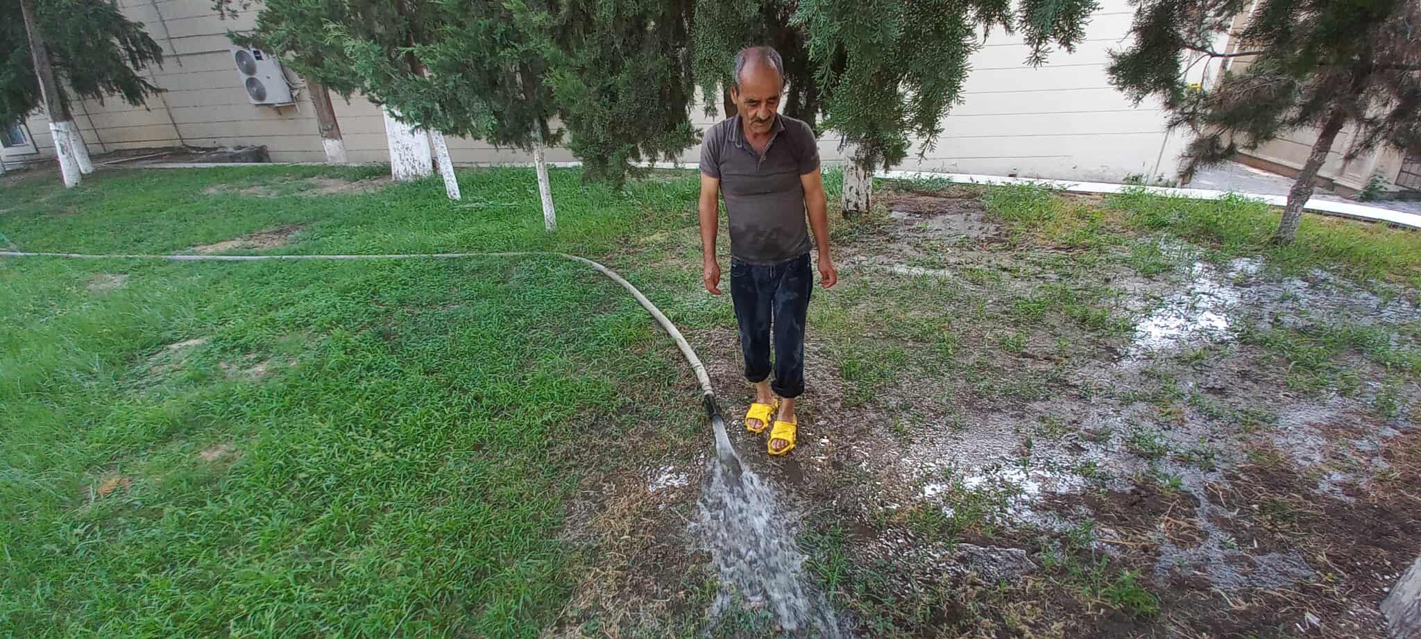 Qeyd olunan ərazilərdə əkilən müxtəlif növ ağaclar, dekorativ güllər mövcud olan arxlardan pompa vasitəsilə su götürülərək suvarılıb və aqrotexniki qulluq olunub.