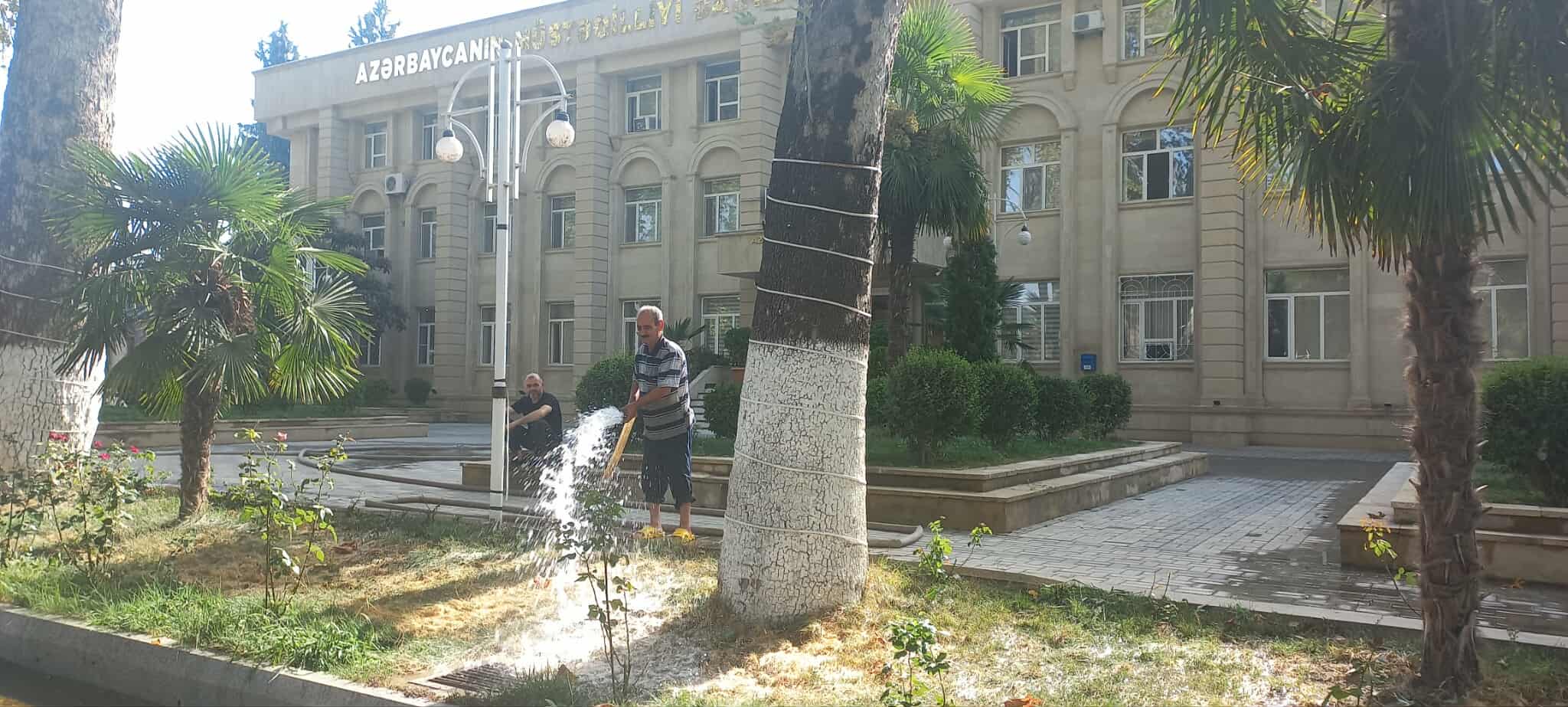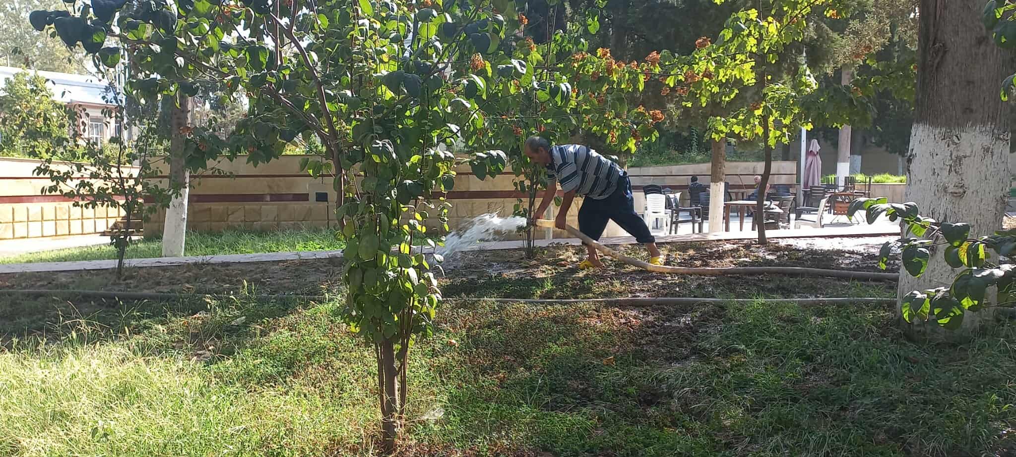 Qeyd olunan ərazilərdə əkilən müxtəlif növ ağaclar, gül-çiçək kolları suvarılıb və aqrotexniki qulluq olunub.