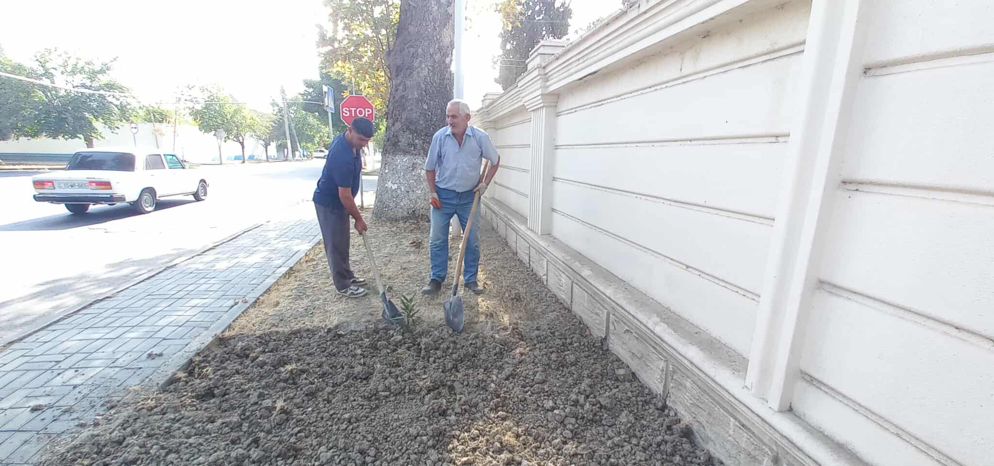 Daha sonra çalalar qazılaraq 17 ədəd dekorativ gül əkilib.Bununla yanaşı qazon otu səpilib.Suvarılıb, aqrotexniki qulluq olunub.