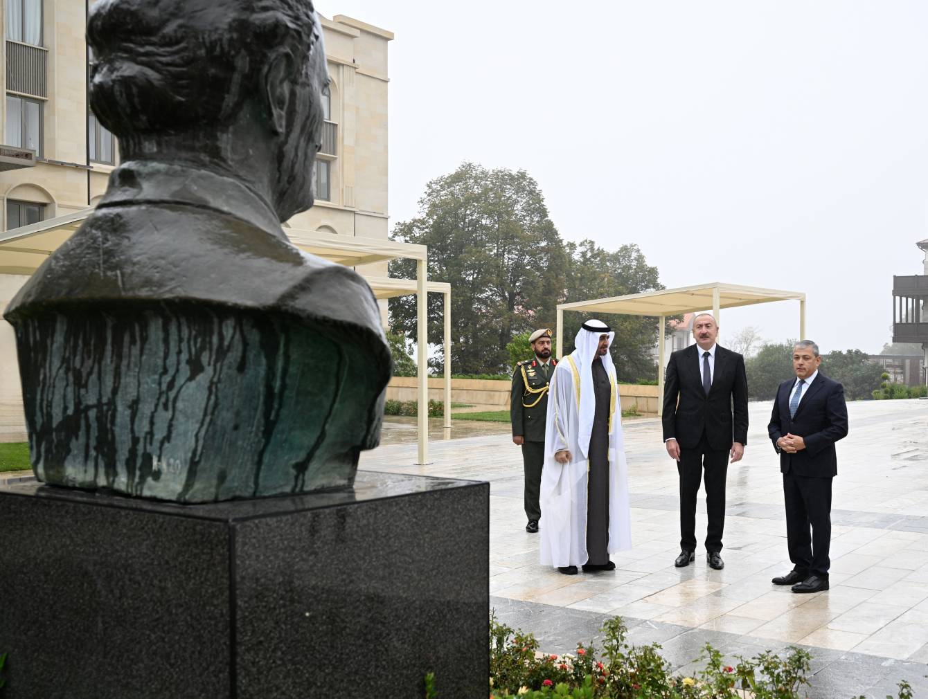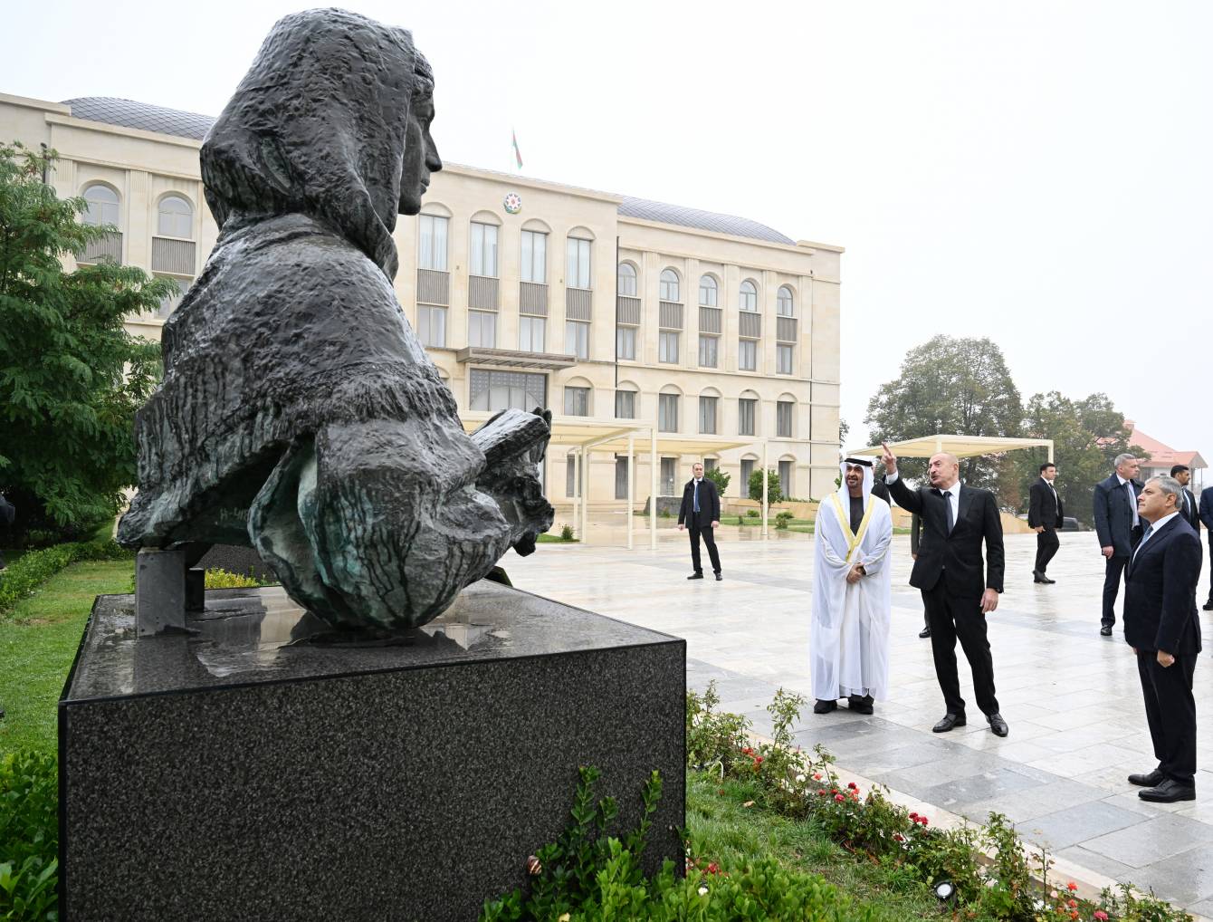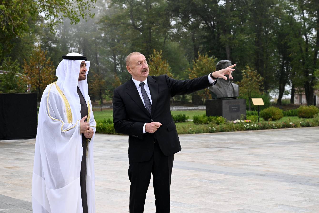 Düzgün.az xəbər verir ki, sentyabrın 16-da Azərbaycan Respublikasının Prezidenti İlham Əliyev və Birləşmiş Ərəb Əmirliklərinin Prezidenti Şeyx Məhəmməd bin Zayed Al Nəhyan Şuşada Azərbaycanın tanınmış şəxsiyyətləri Natəvanın, Bülbülün və Üzeyir Hacıbəylinin erməni işğalçıları tərəfindən güllələnmiş heykəllərinə baxıblar.