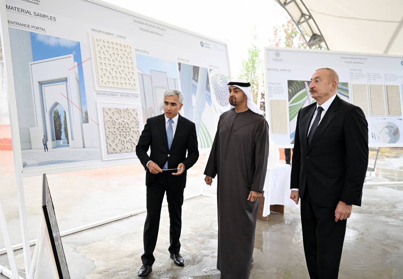 Düzgün.az xəbər verir ki, Azərbaycan Respublikasının Prezidenti İlham Əliyev və Birləşmiş Ərəb Əmirliklərinin Prezidenti Şeyx Məhəmməd bin Zayed Al Nəhyan sentyabrın 16-da Yeni Şuşa məscidində tikinti işlərinin gedişi ilə tanış olublar.