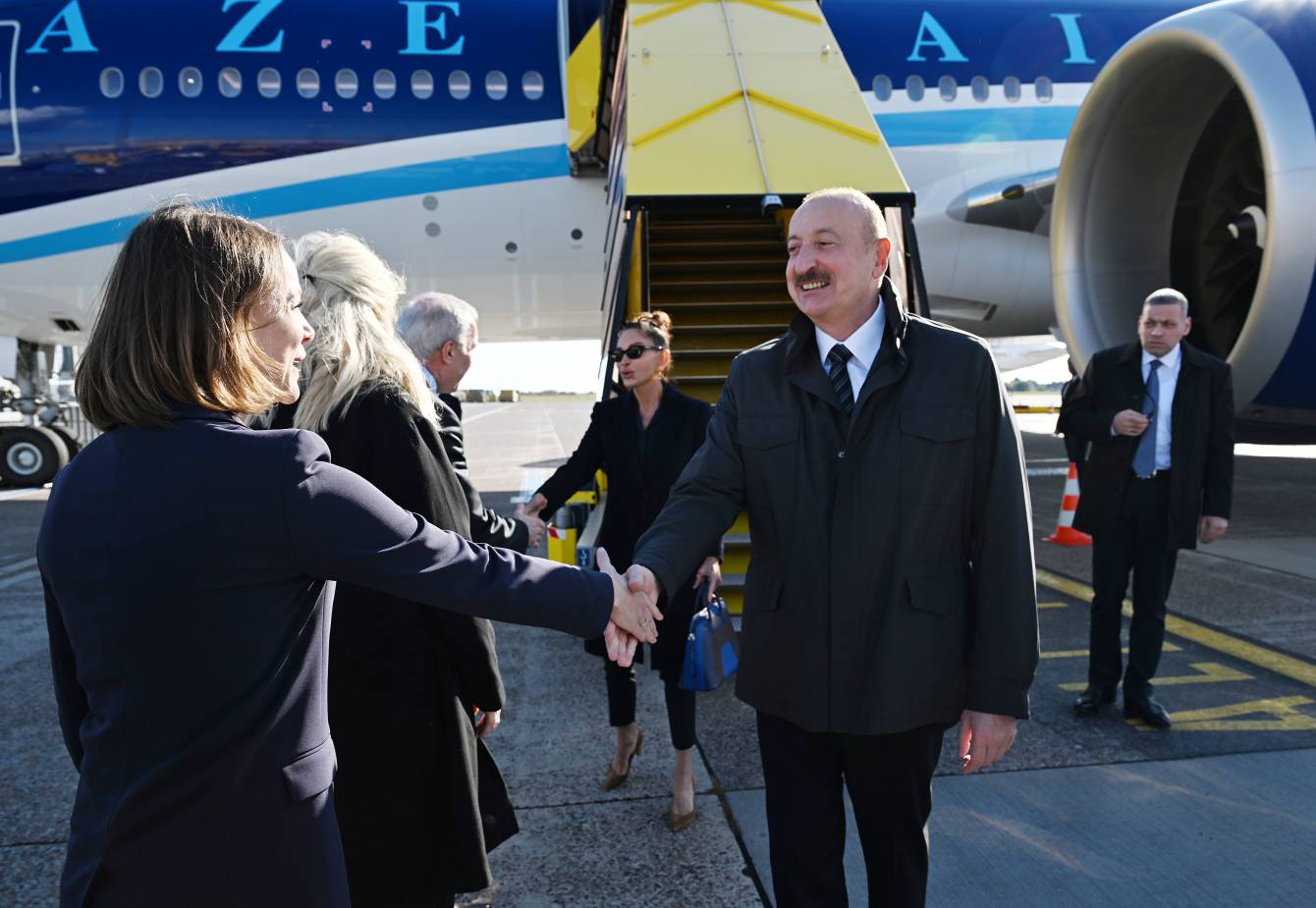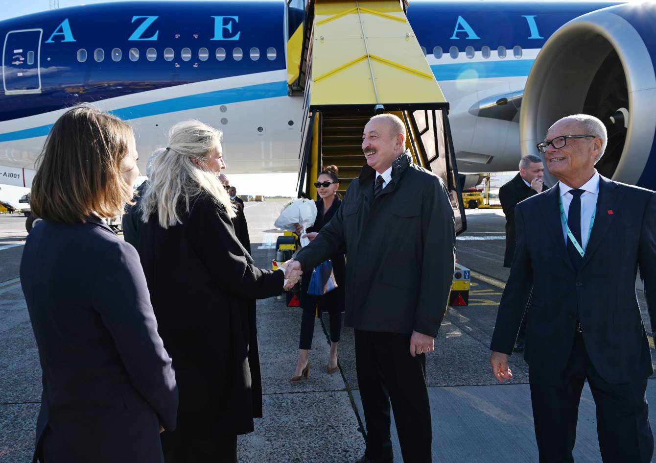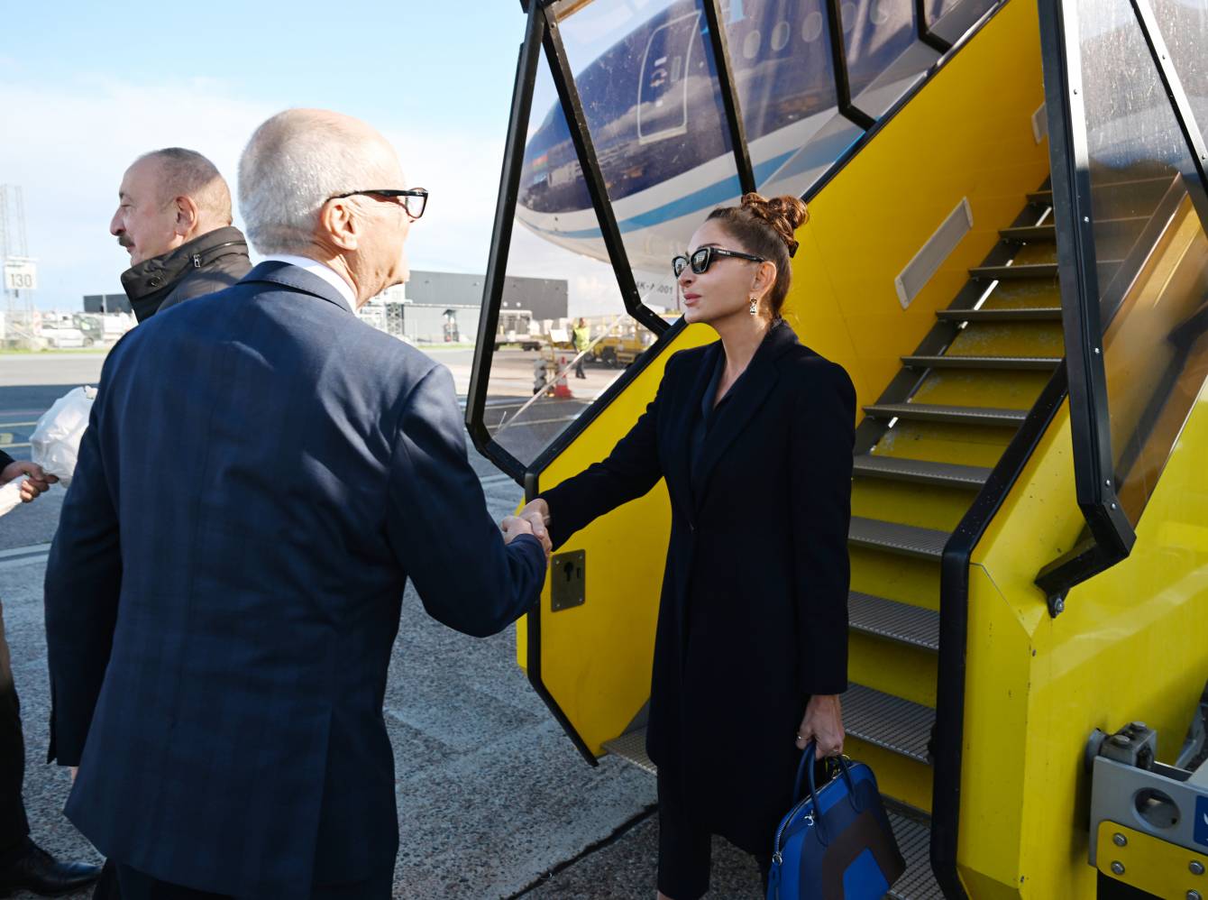 Kopenhagen şəhərinin beynəlxalq aeroportunda Prezident İlham Əliyevi və birinci xanım Mehriban Əliyevanı rəsmi şəxslər qarşılayıblar.
